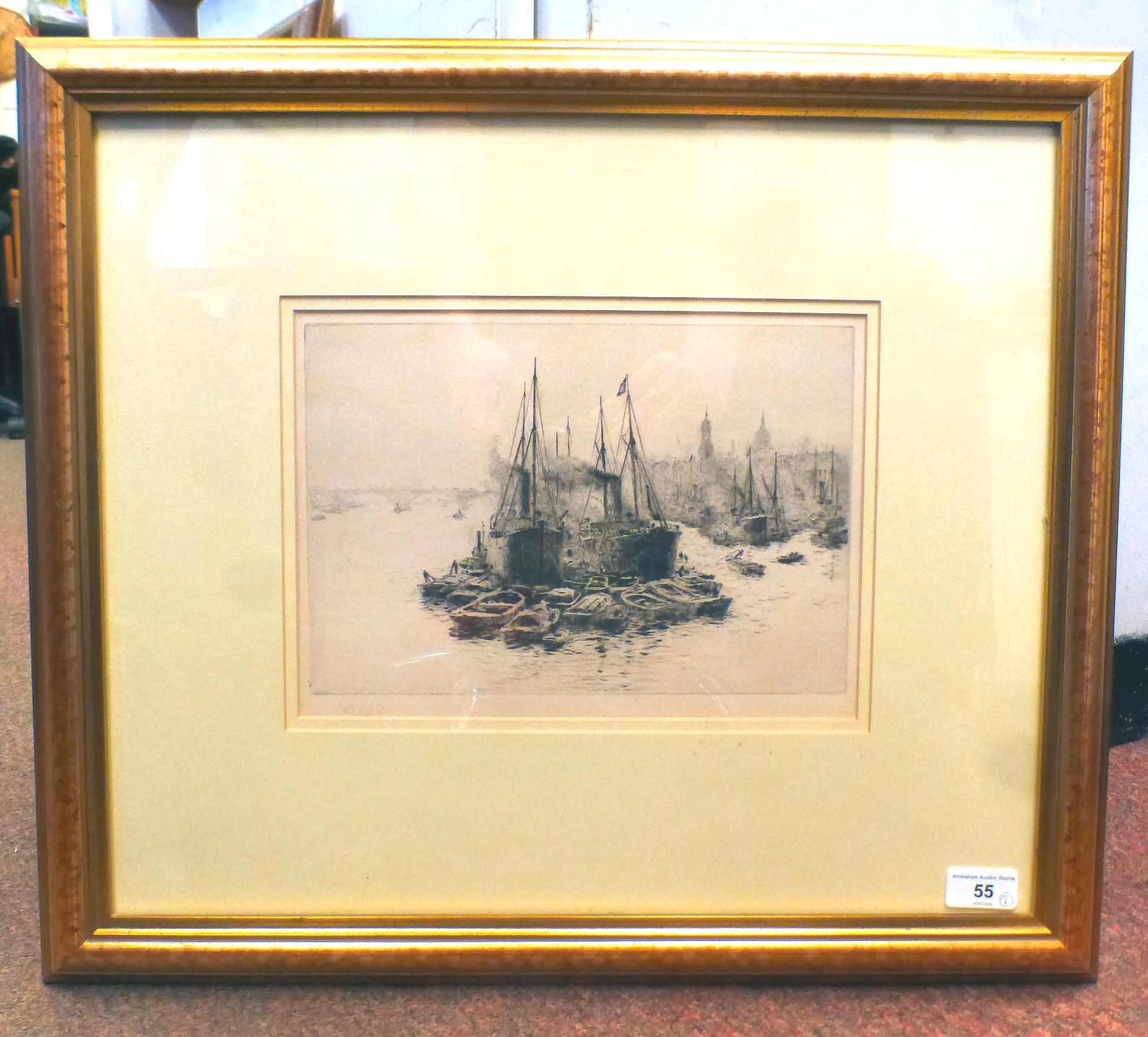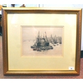 After William Lionel Wyllie - 'Unloading into Lighters in the Upper Pool' print bears a pencil signature 8" x 12" framed