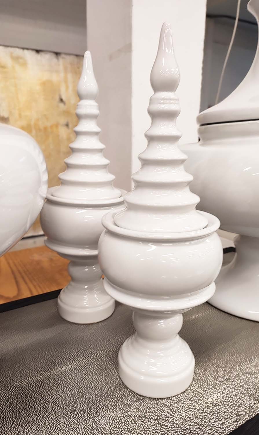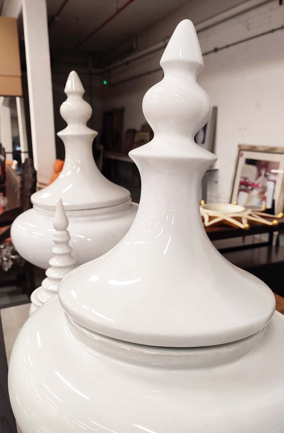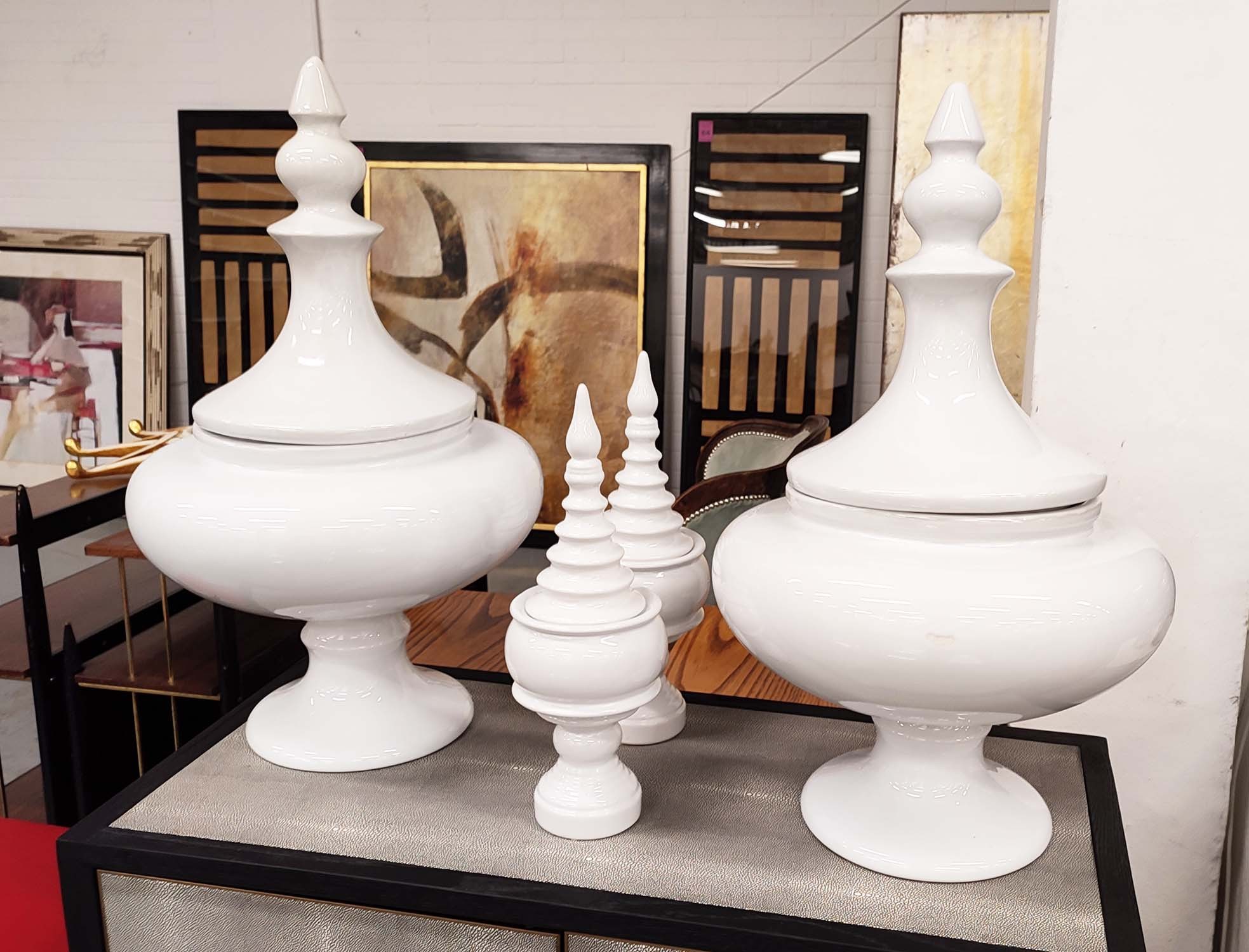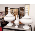 LIDDED URNS, two pairs, one large 71cm H, the other 43cm H. (4)