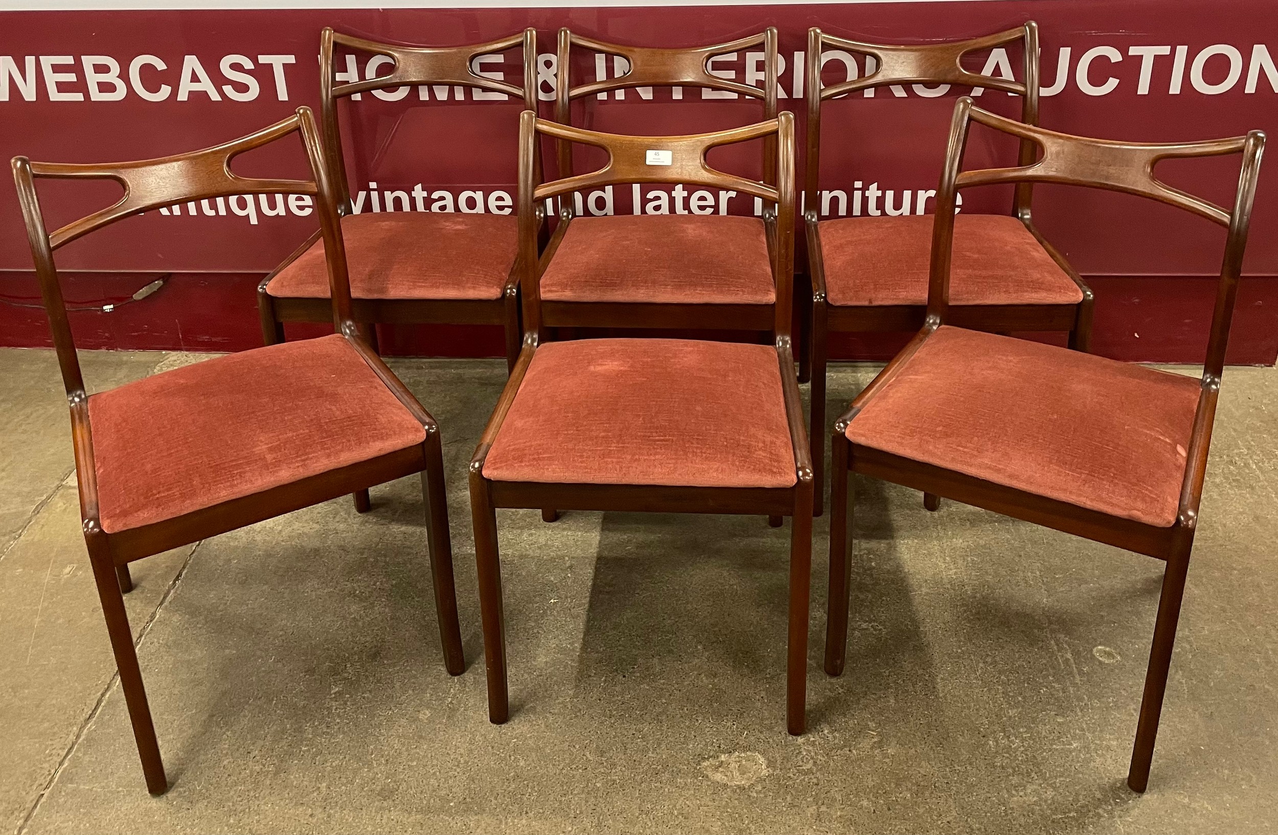 A set of six Danish Johannes Andersen style teak dining chairs