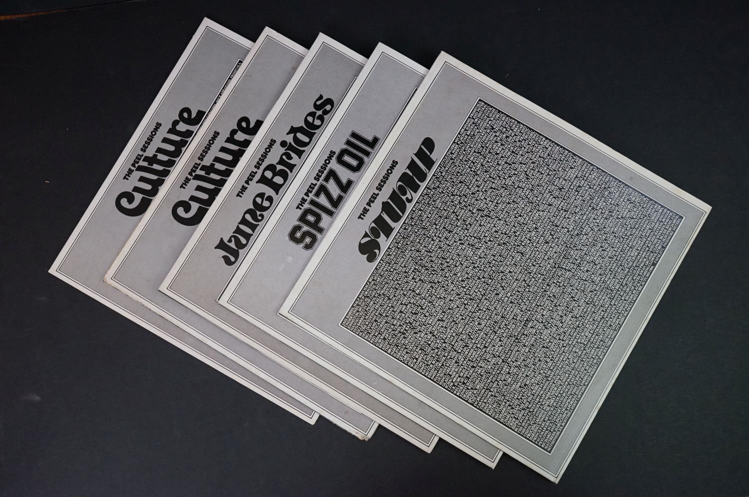 Vinyl - The Peel Sessions 29 LP's including some duplication, all on the Strange Fruit label. Numbers as follows - SFPS 002 003 004 005 x2 006 008 009 010 x 2, 012 014 015 016 017 019 x 2 022 023 024 x 2 025 026 x 2 027 029 030 065 072 and SPFMA 205. Sleeves & Vinyl Vg+ overall