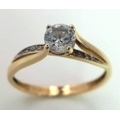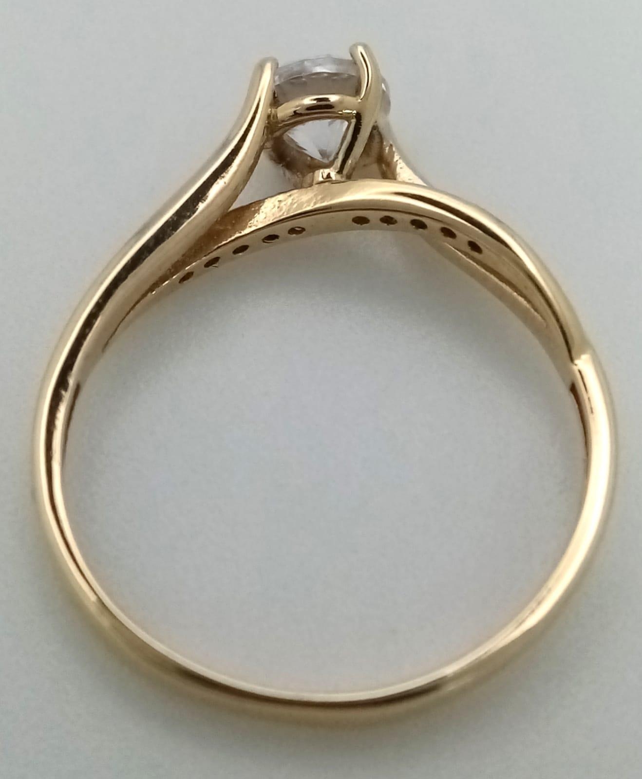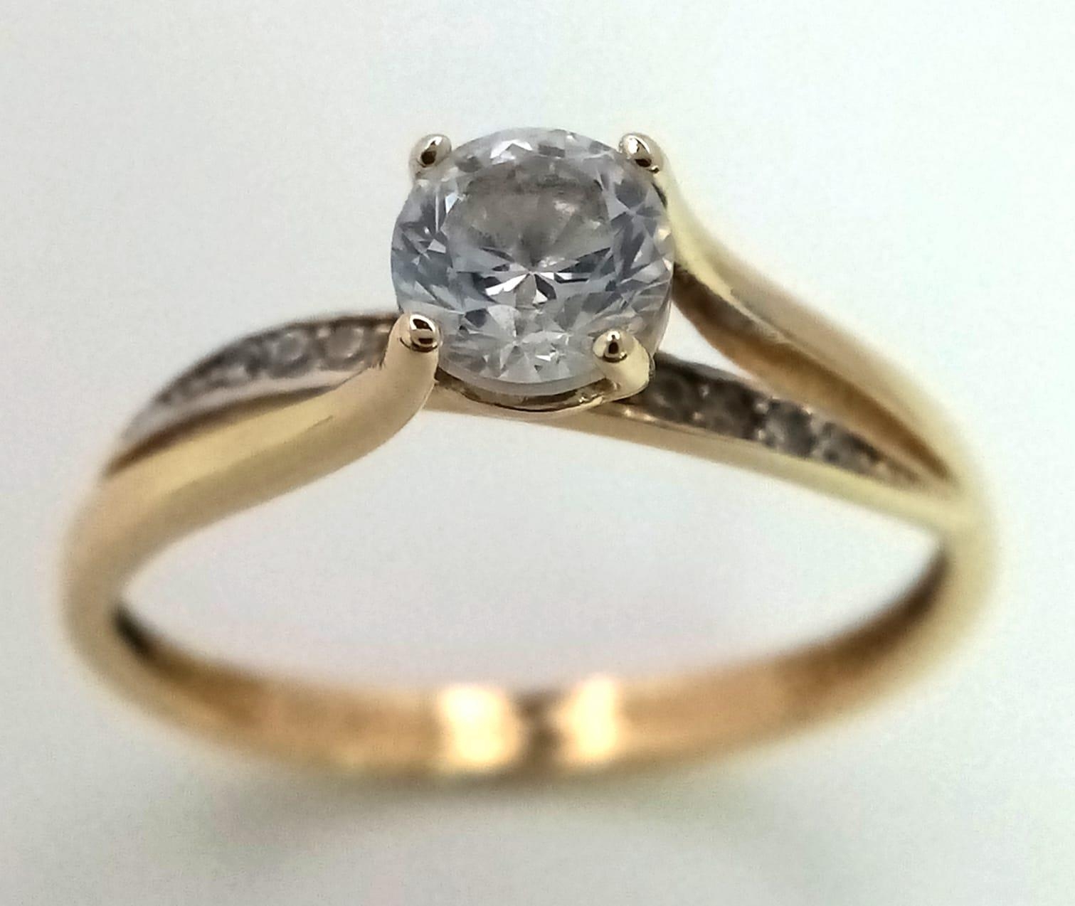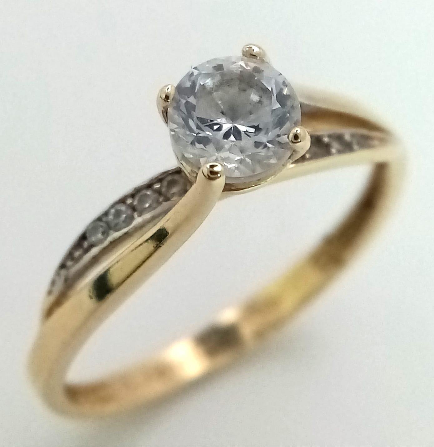 A 14k Yellow Gold White Stone Solitaire Ring. Size N. 1.9g total weight.