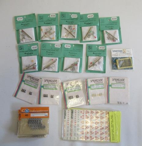 OO Scale trackside accessories including nine colour light signal kits, train lamps, fish plates and road signs, M (Est. plus 24% premium inc. VAT)