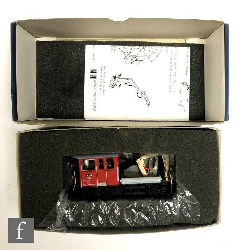 An HO gauge Weinert Modellbau 4043-3 SBB rail tractor TM III in red with movable loading crane, boxed.