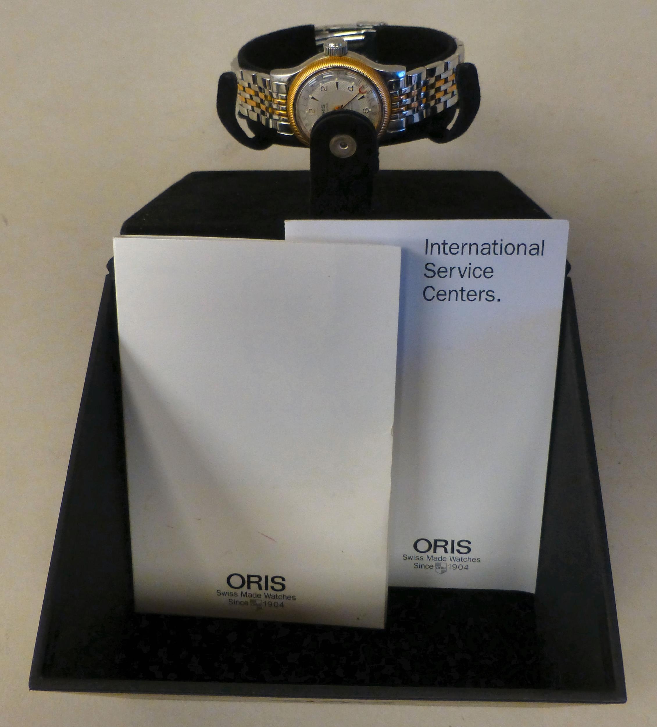 A lady's Oris stainless steel cased, automatic bracelet watch with an Arabic dial boxed