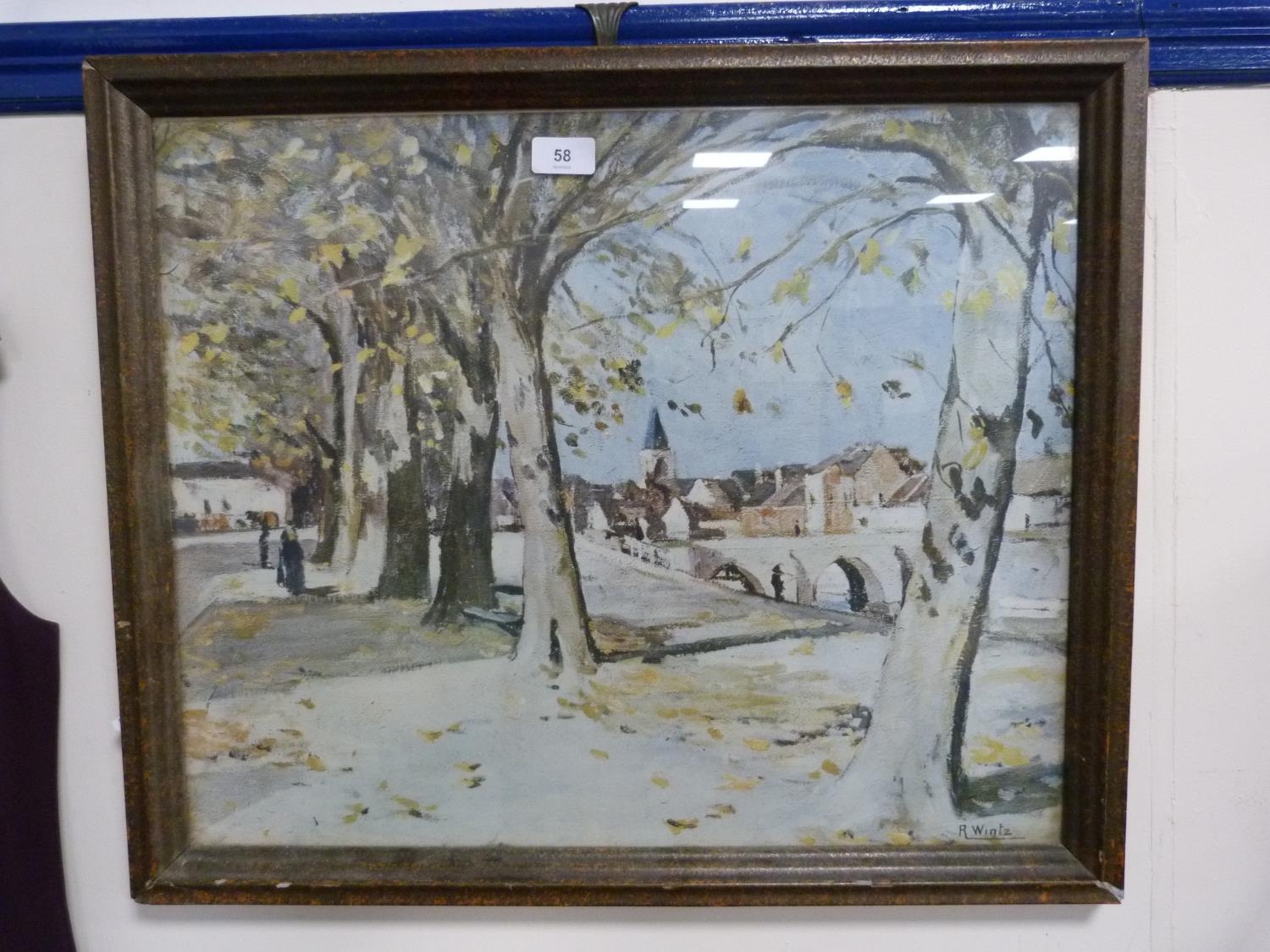 R WintzContinental town sceneLithograph.