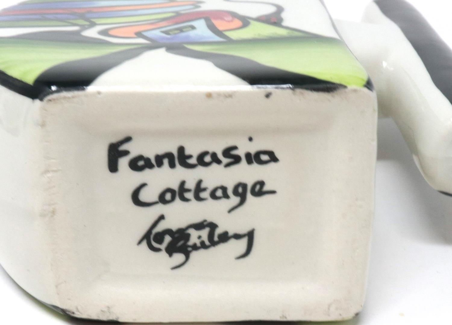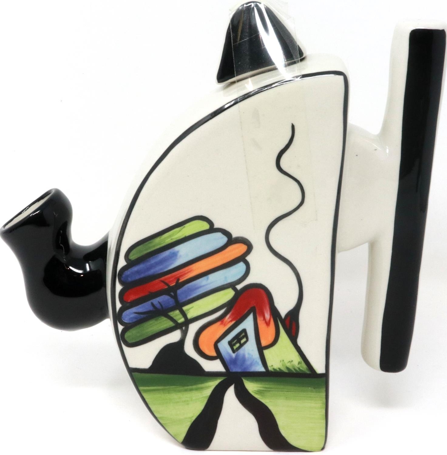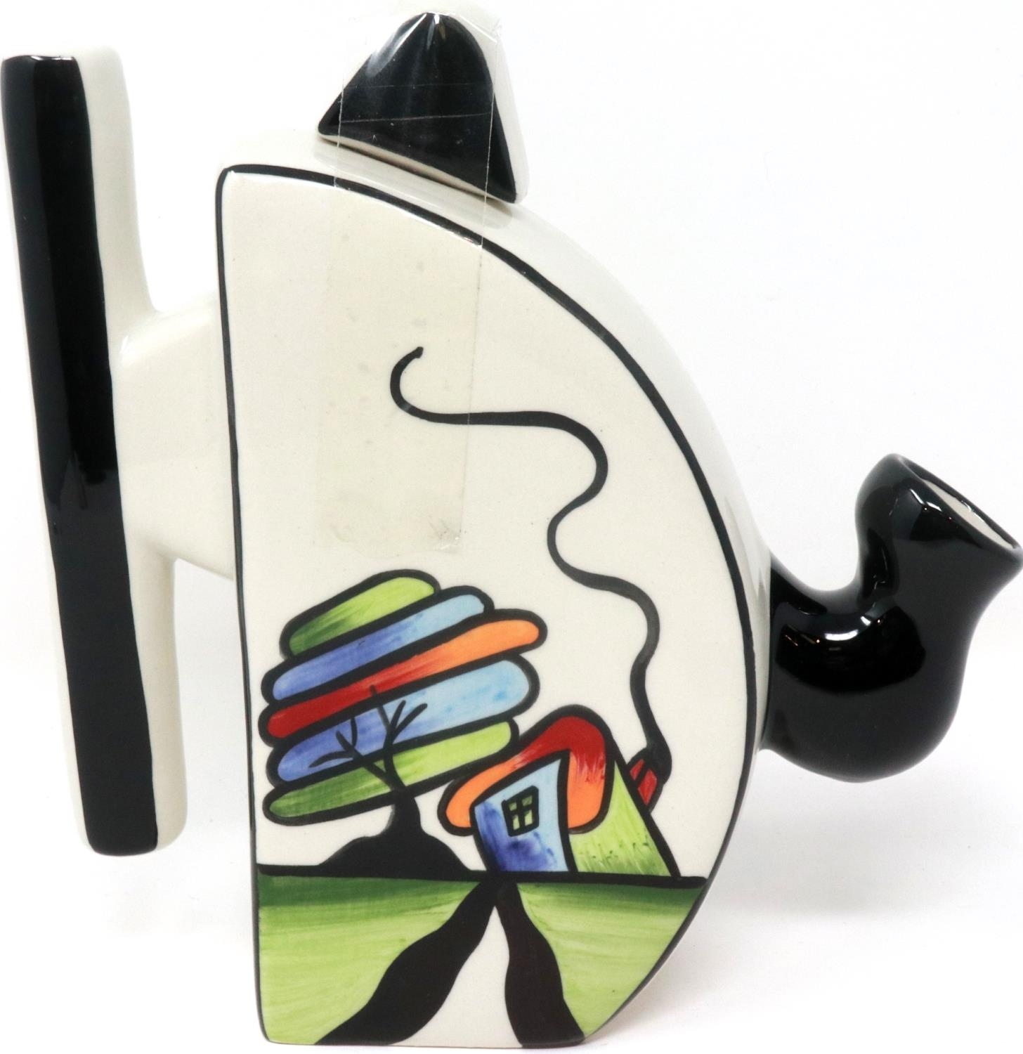 Lorna Bailey half circle teapot in the Fantasia Cottage pattern, H: 18 cm. P&P Group 1 (£14+VAT for the first lot and £1+VAT for subsequent lots)