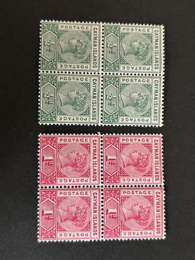 Cayman Islands 1900 1/2d & 1d u/m blocks of 4 SG 1A & 2. (8) (S)