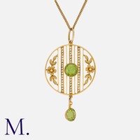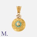 An Antique Pendant Locket in 18K yellow gold, with Etruscan revival filigree work, glazed locket. French marks for 18ct gold.
