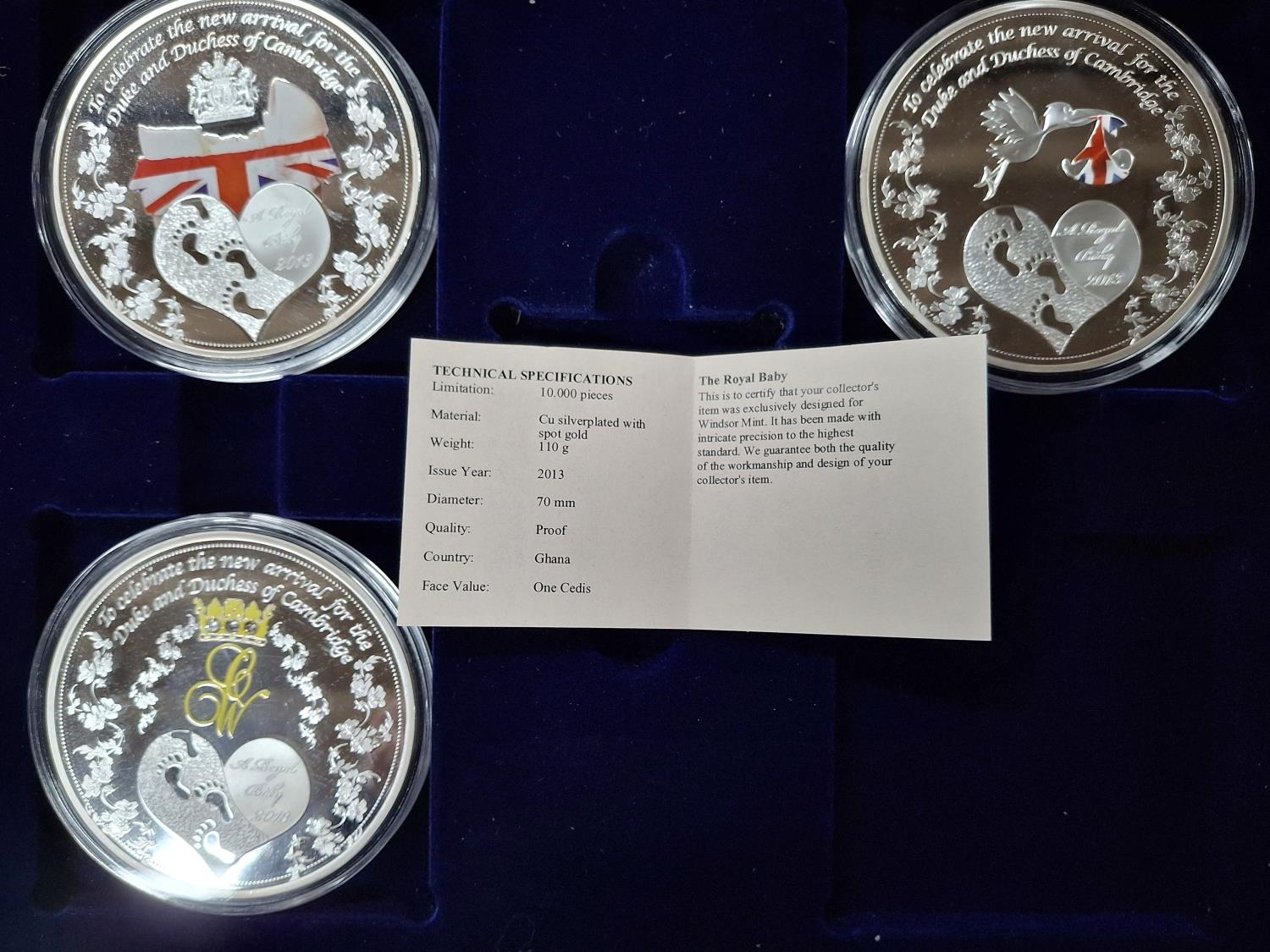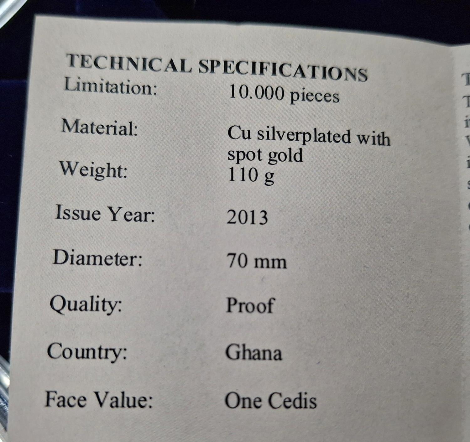Two boxed sets of 2013 Ghana proof silver plated commemorative coins, both boxes with 3 x 110 gram coins (6),