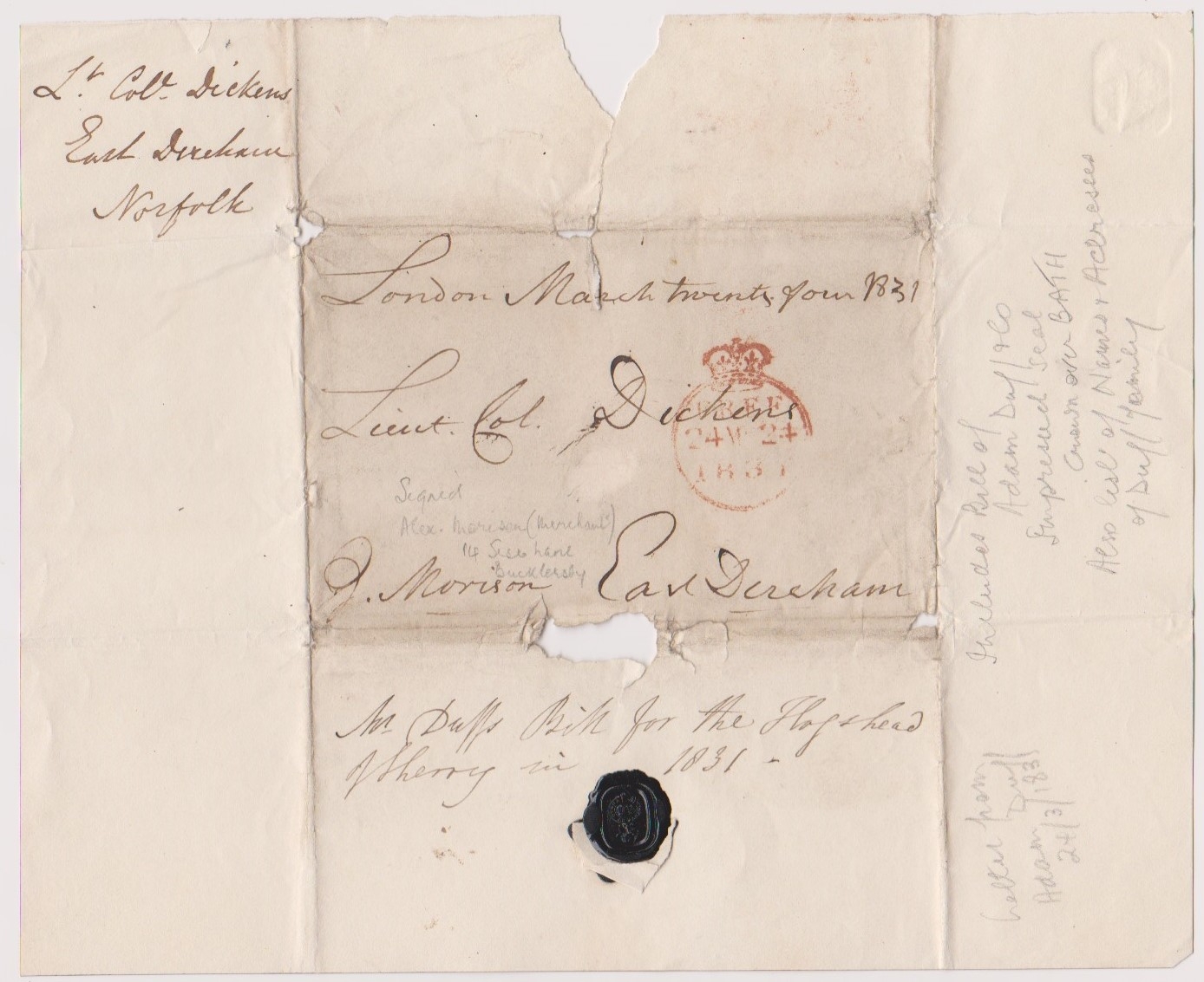 Great Britain 1831-Wrapper with enclosed letter and invoice dated March 24th 1831 London posted to East Dereham-red crown FREE/24MR24/1831