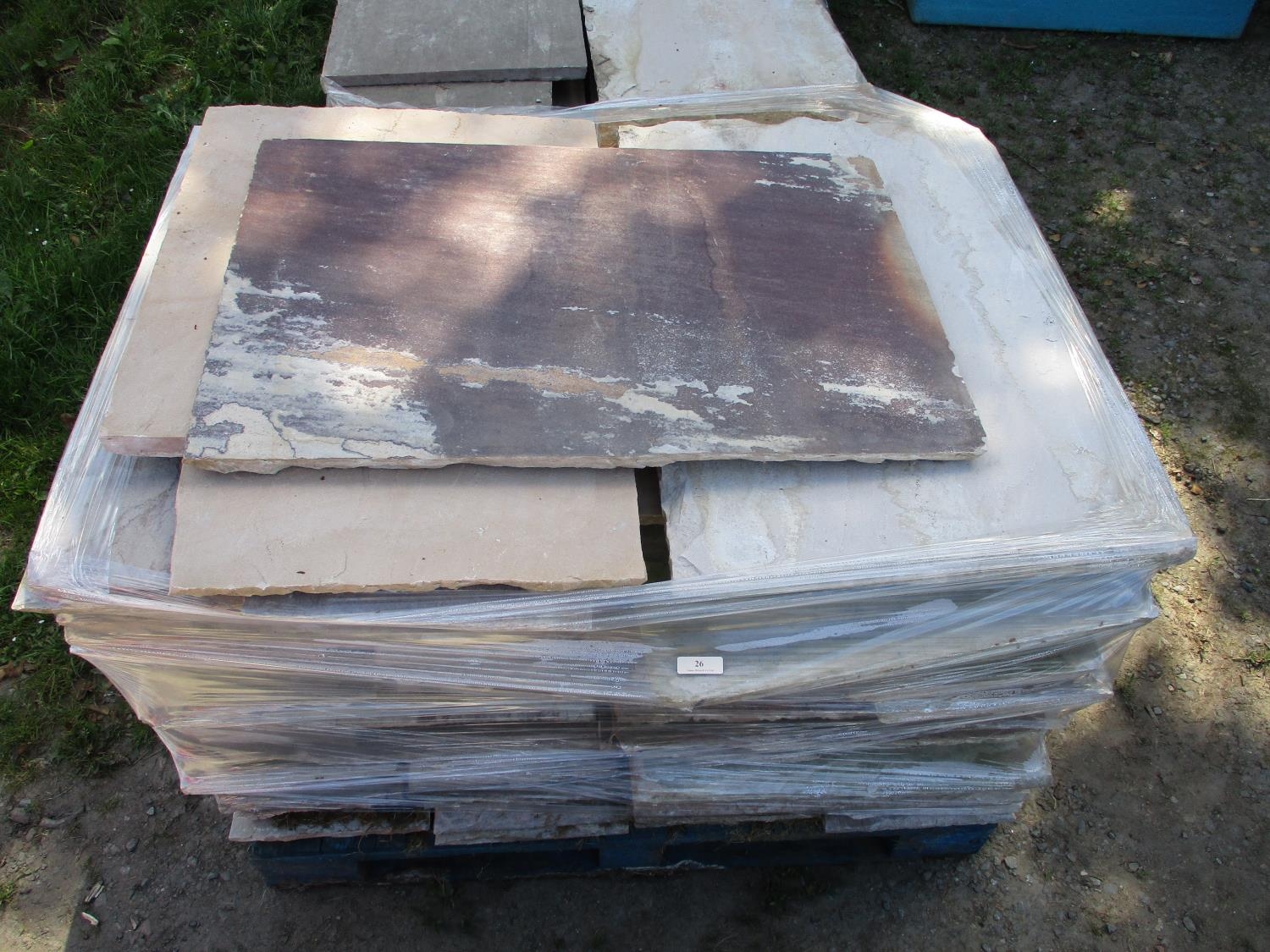 A pallet of sand stone paving