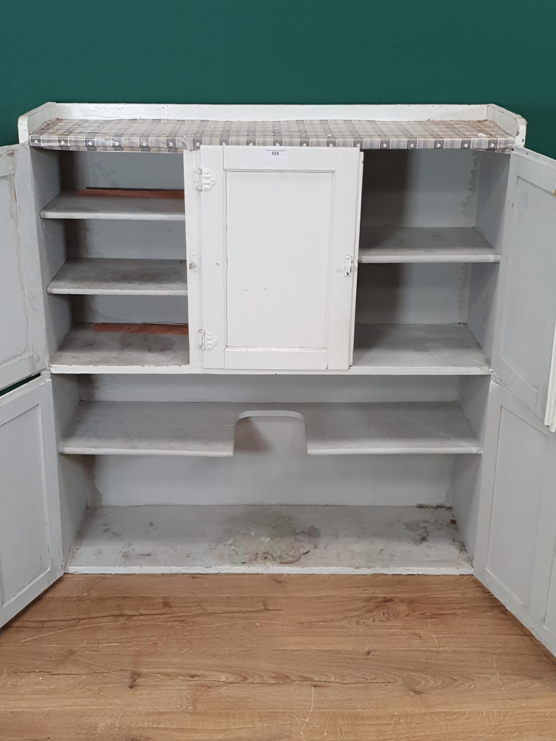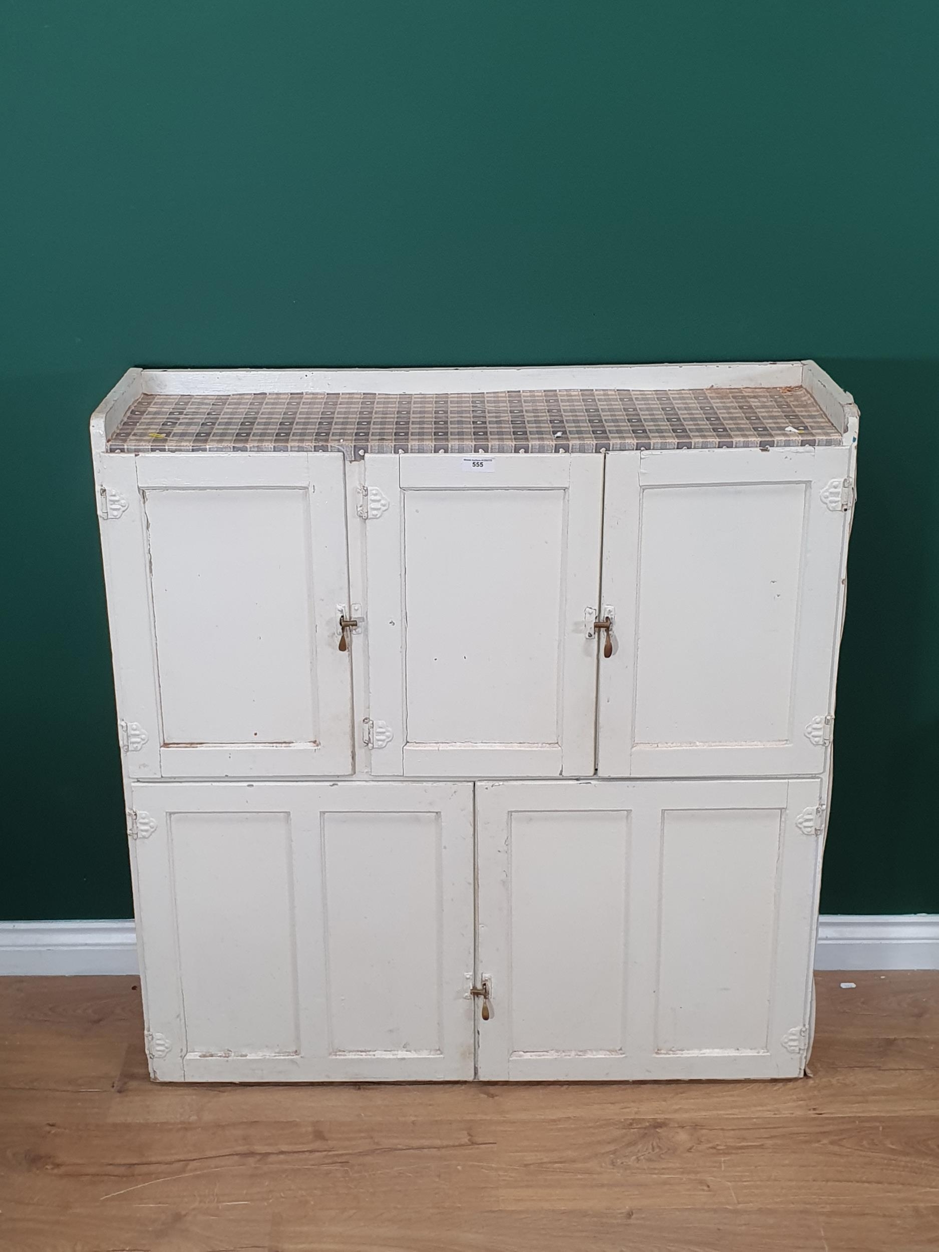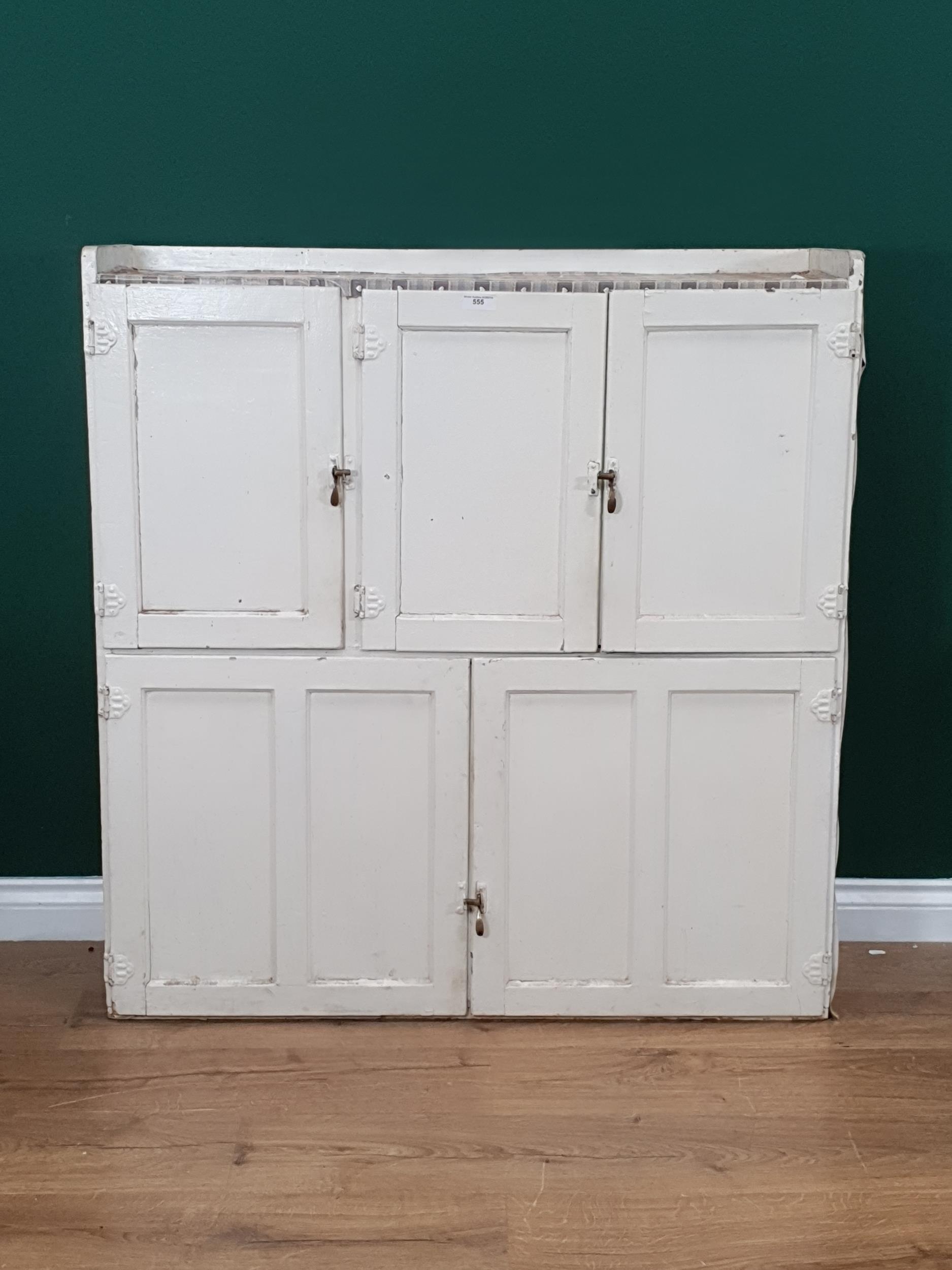 A white painted Kitchen Cabinet Top, fitted three panel doors above pair of panelled doors, 3ft 6"High x 3ft 5"Wide.