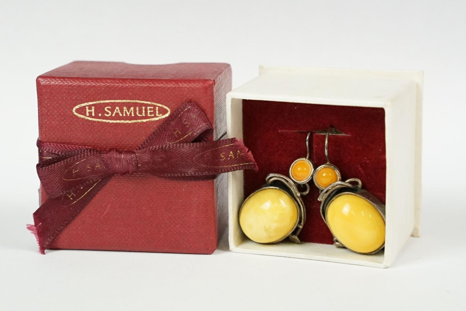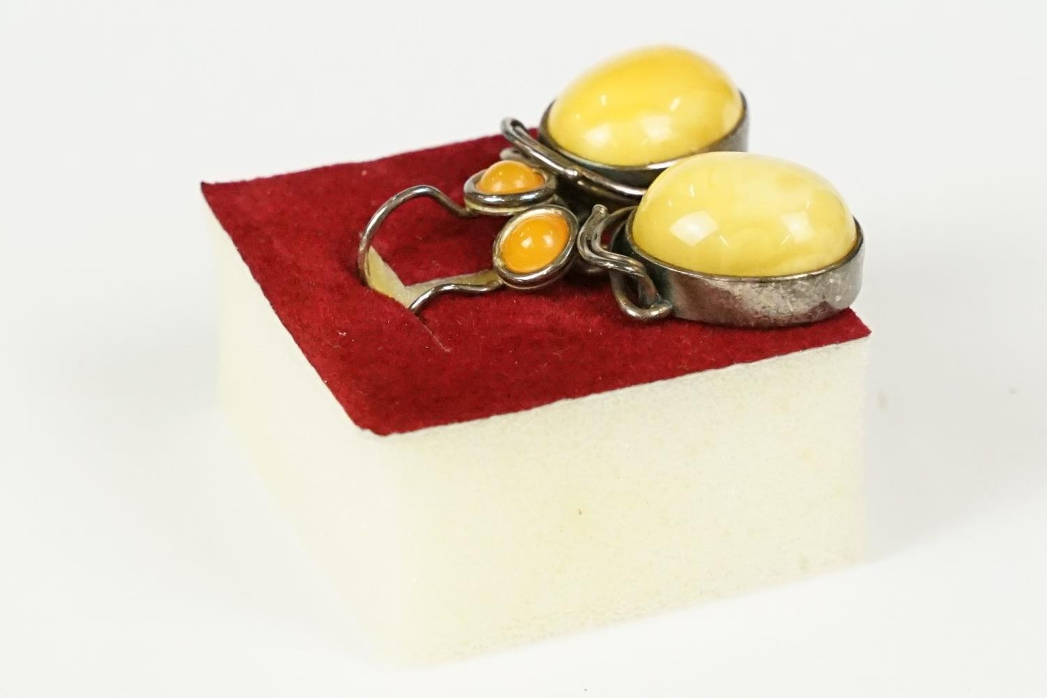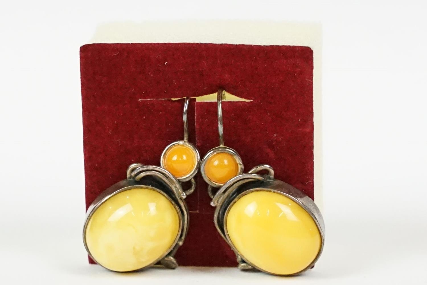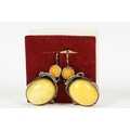 Ladies silver yellow and orange agate earrings