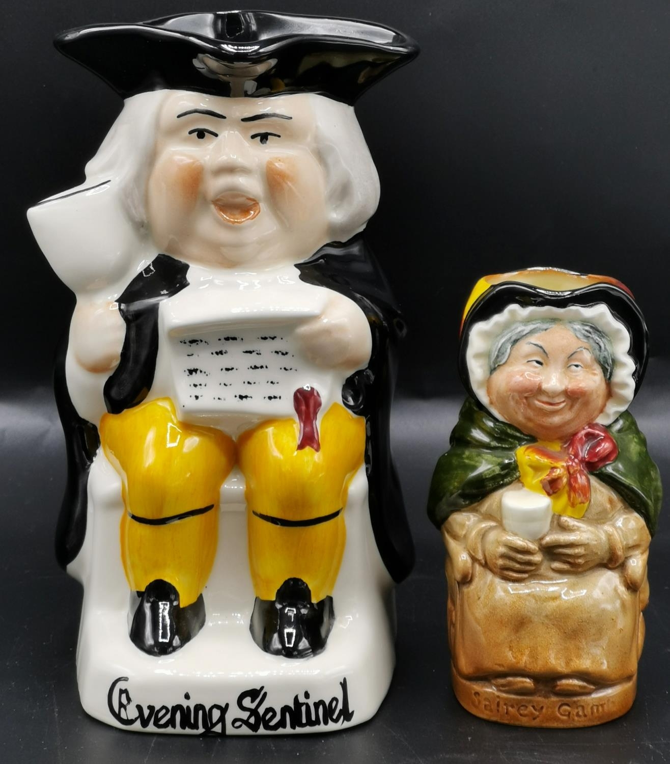 TONY WOOD (EVENING SENTINAL) TOBY JUG Signed TOGETHER WITH A ROYAL DOULTON TOBY JUG "SAIREY GAMP"
