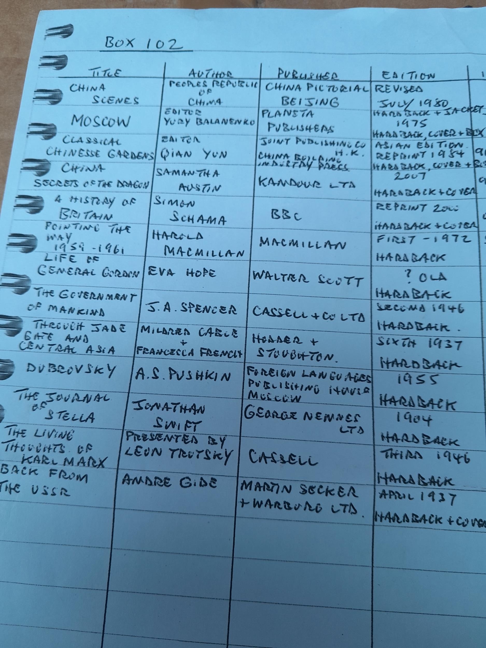 Box of books with very approx. vendor list, please ignore condition reports on the list as they are incorrect. This list does not match books in box