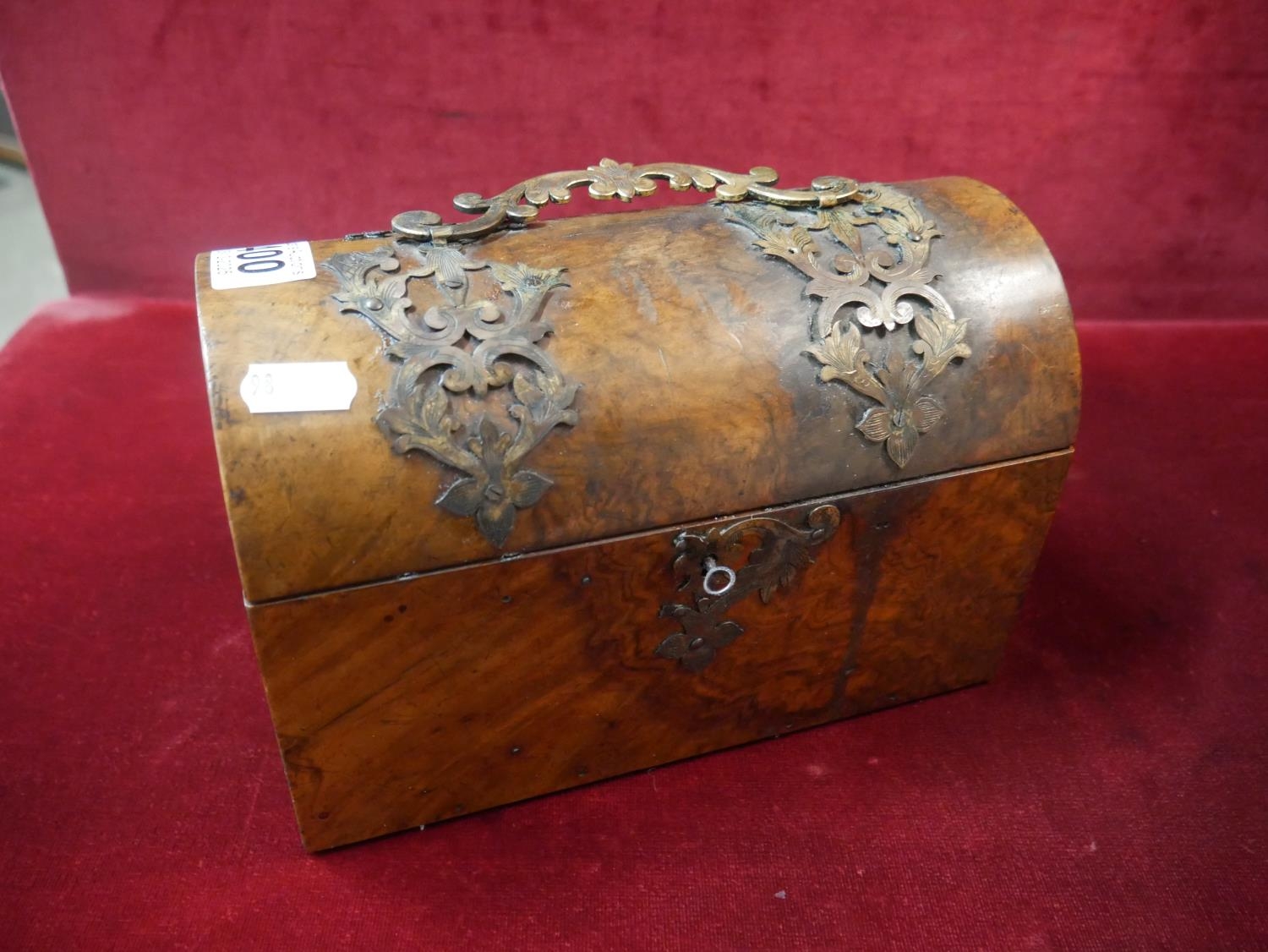 VICTORIAN WALNUT AND BRASS STATIONARY TRUNK