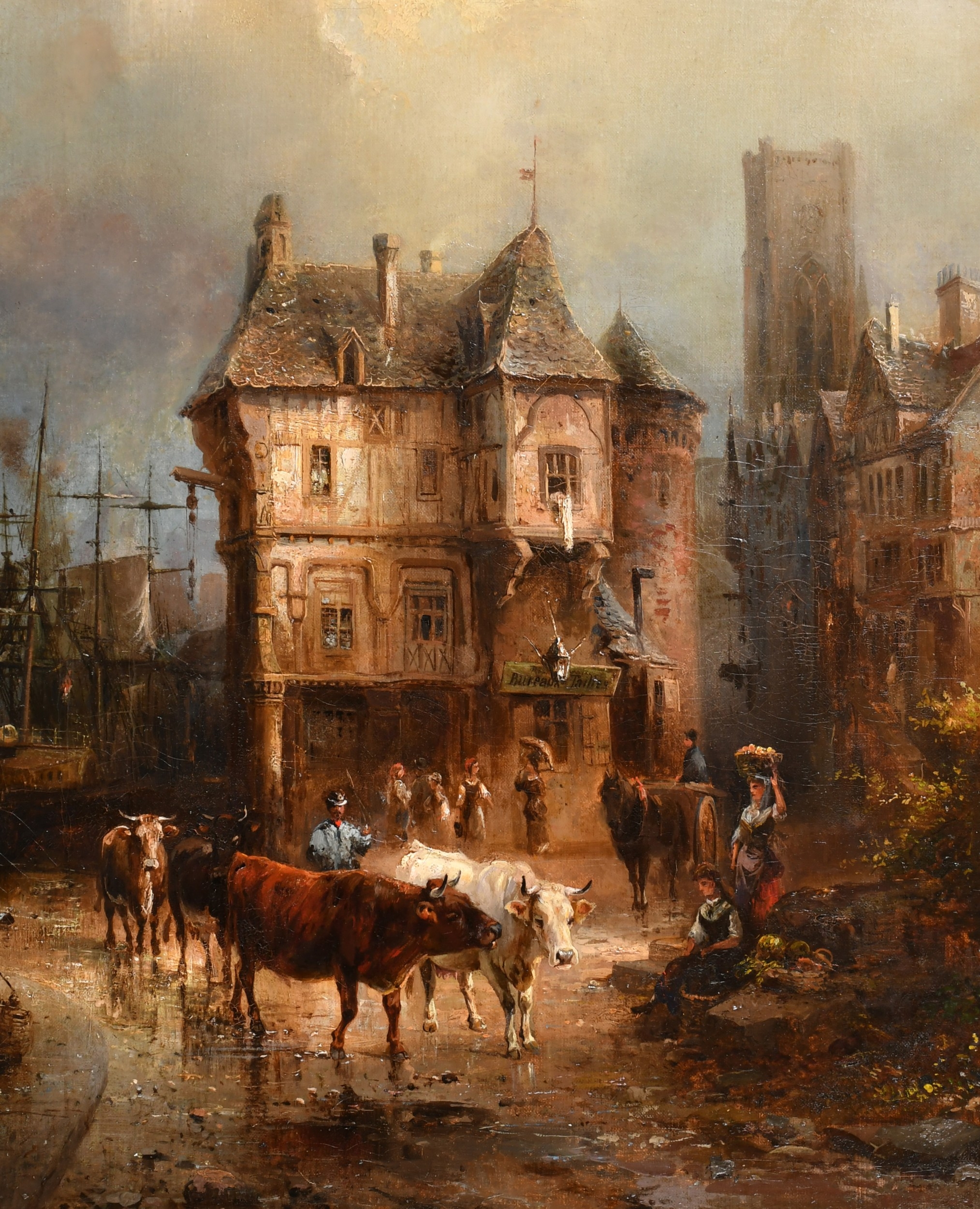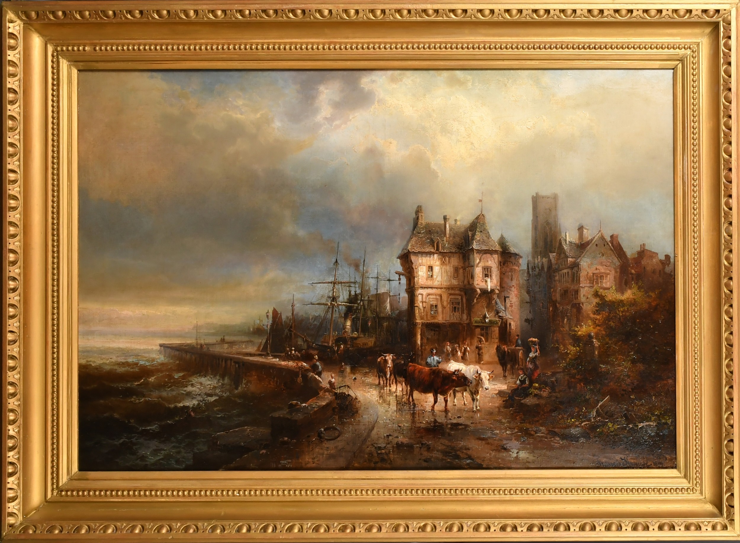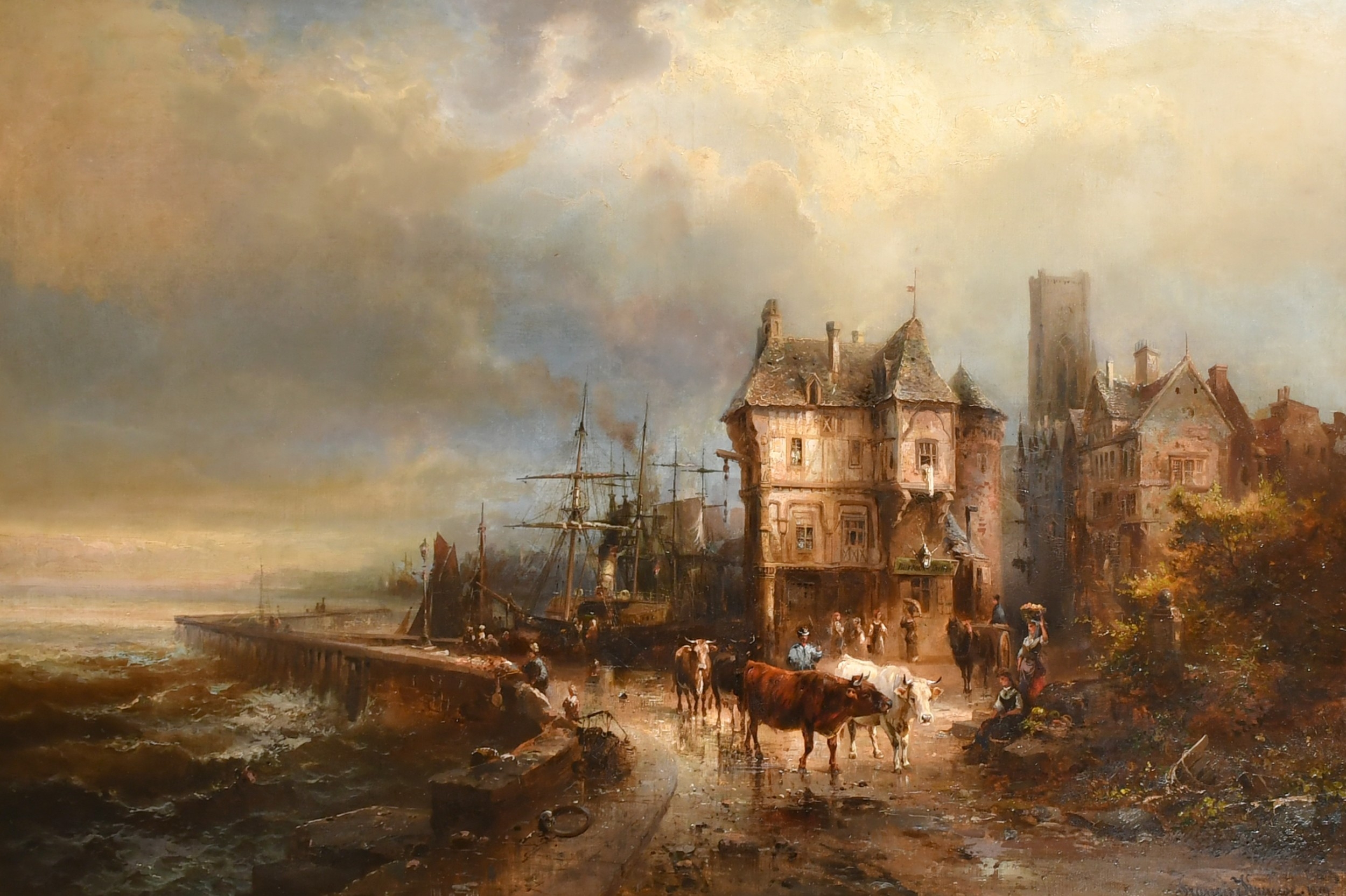 Francis Krause (1836-1900) German. A Continental Harbour Town, Oil on canvas, Signed and dated 1879, 29.25" x 44" (74.3 x 111.8cm)