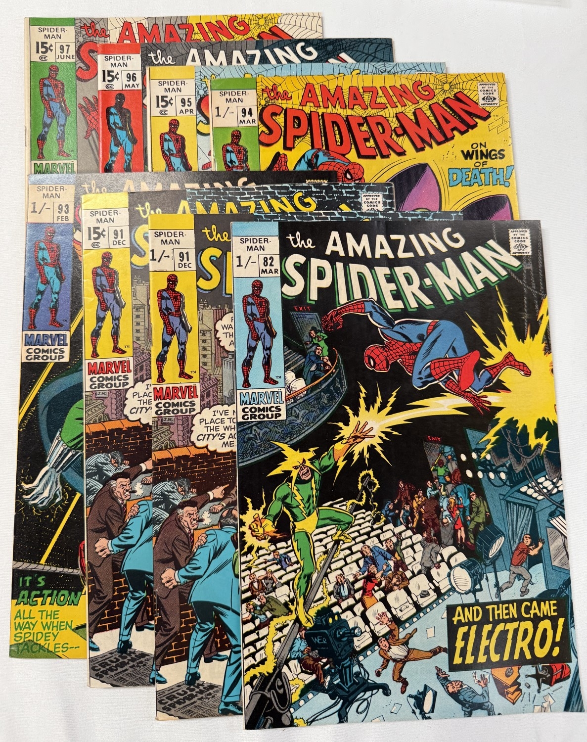 Marvel Comics - 'The Amazing Spider-Man' #82, 91, 91, 93, 94, 95, 96, 97, UK and US pricing.