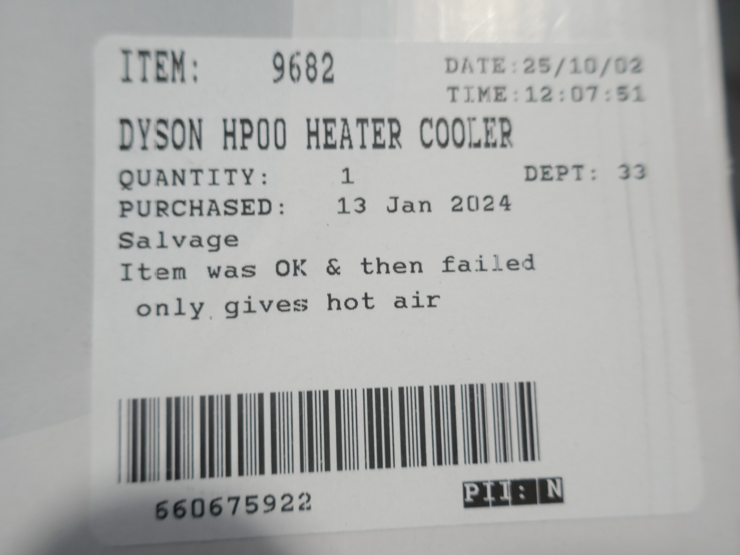 Dyson Pure Hot+Cool fan with remote, original RRP £364.99 + VAT (372-523) *This lot is subject to VAT