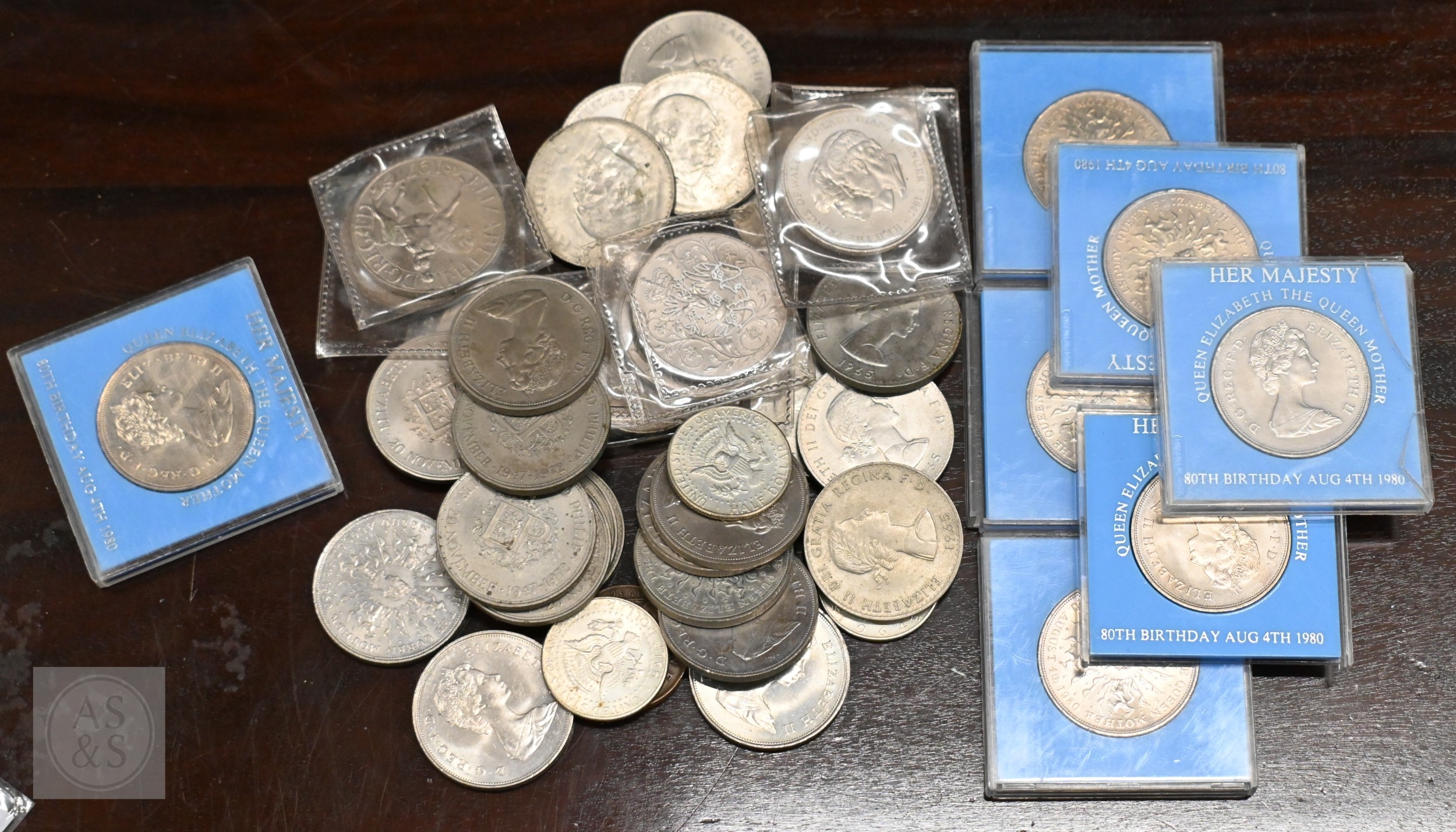 Ten 1965 Churchill crowns, to/w 28 other Elizabeth II commemorative crowns and a quantity of first day covers (box)