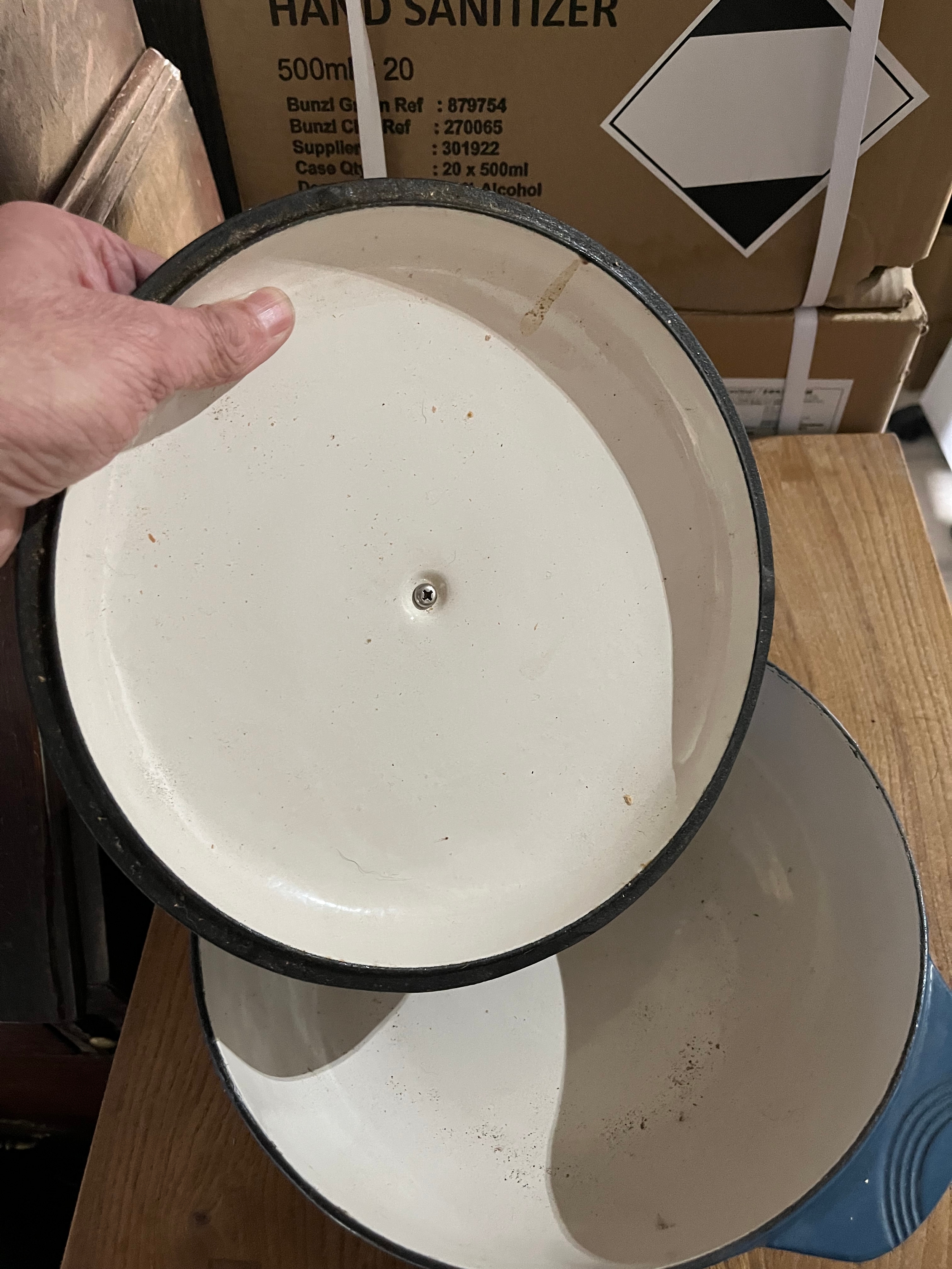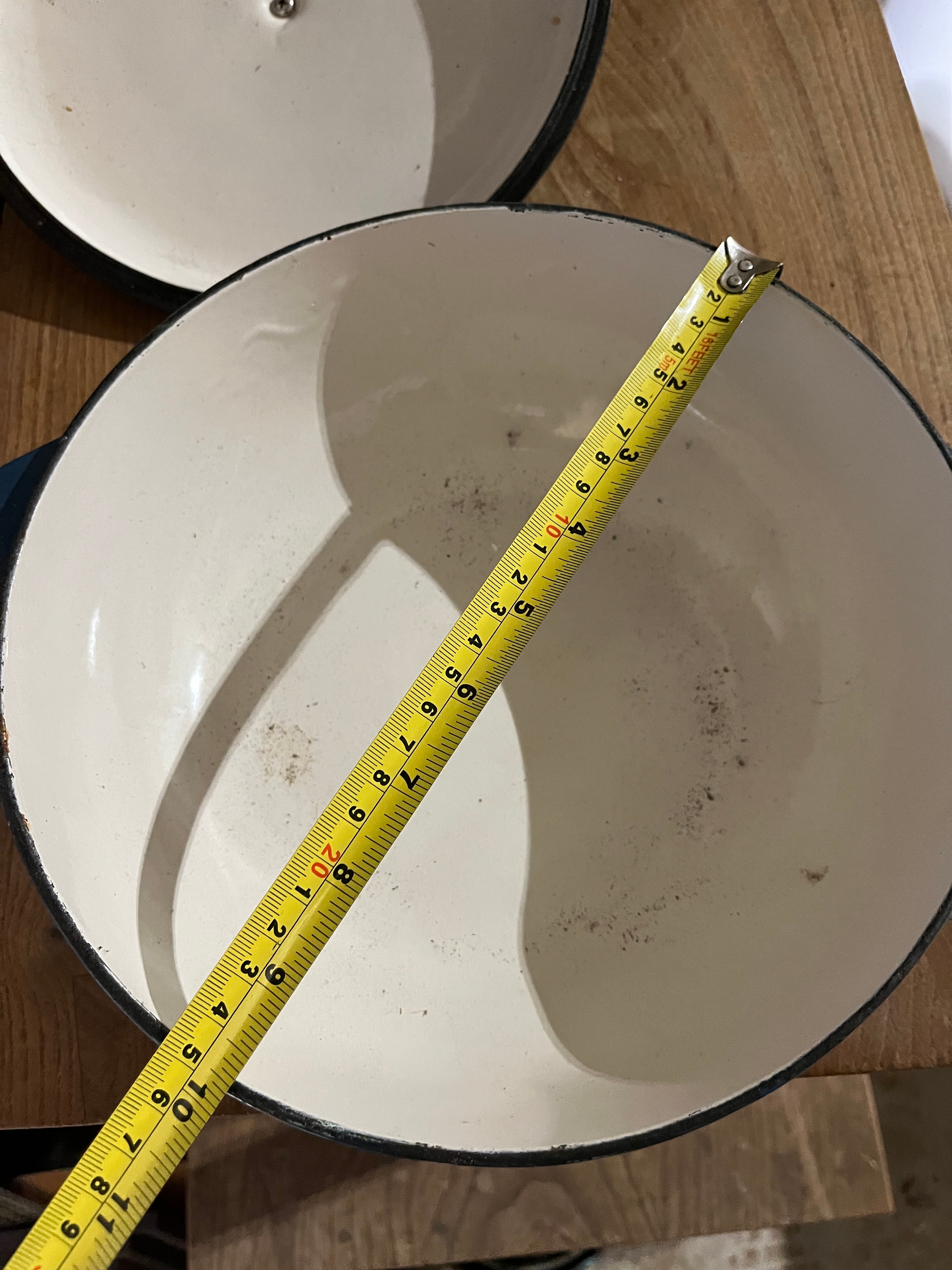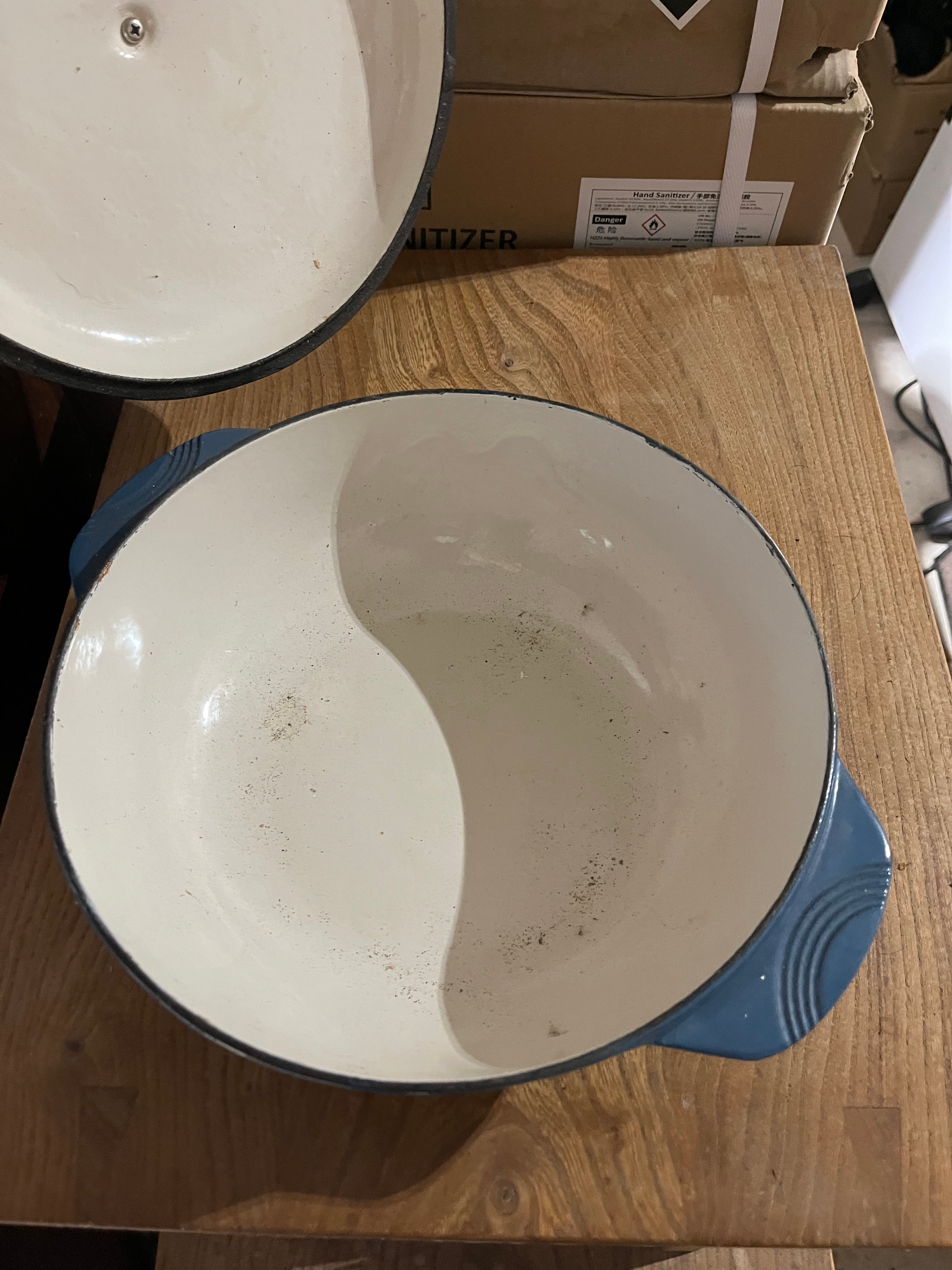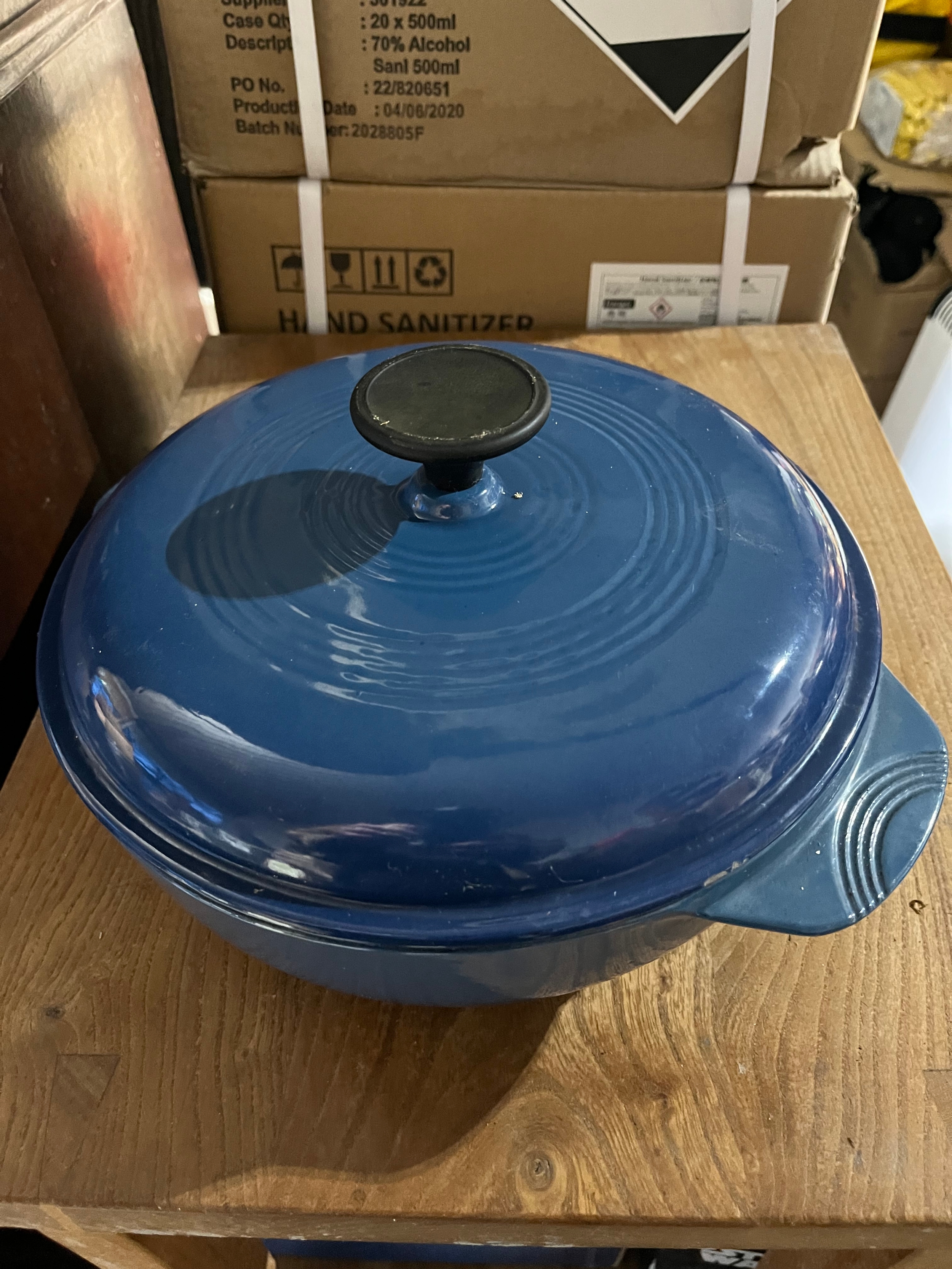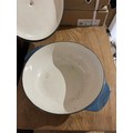 Large blue cast iron casserole pot