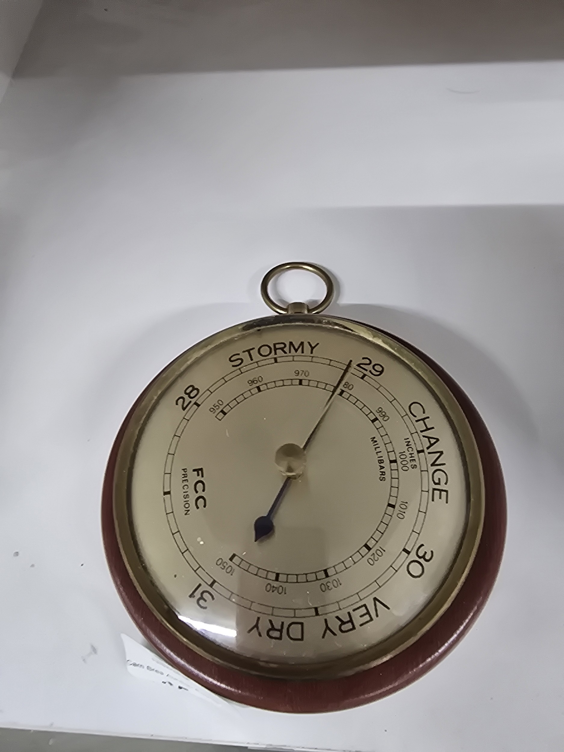FCC Precision Circular Wooden Cased Aneroid Barometer