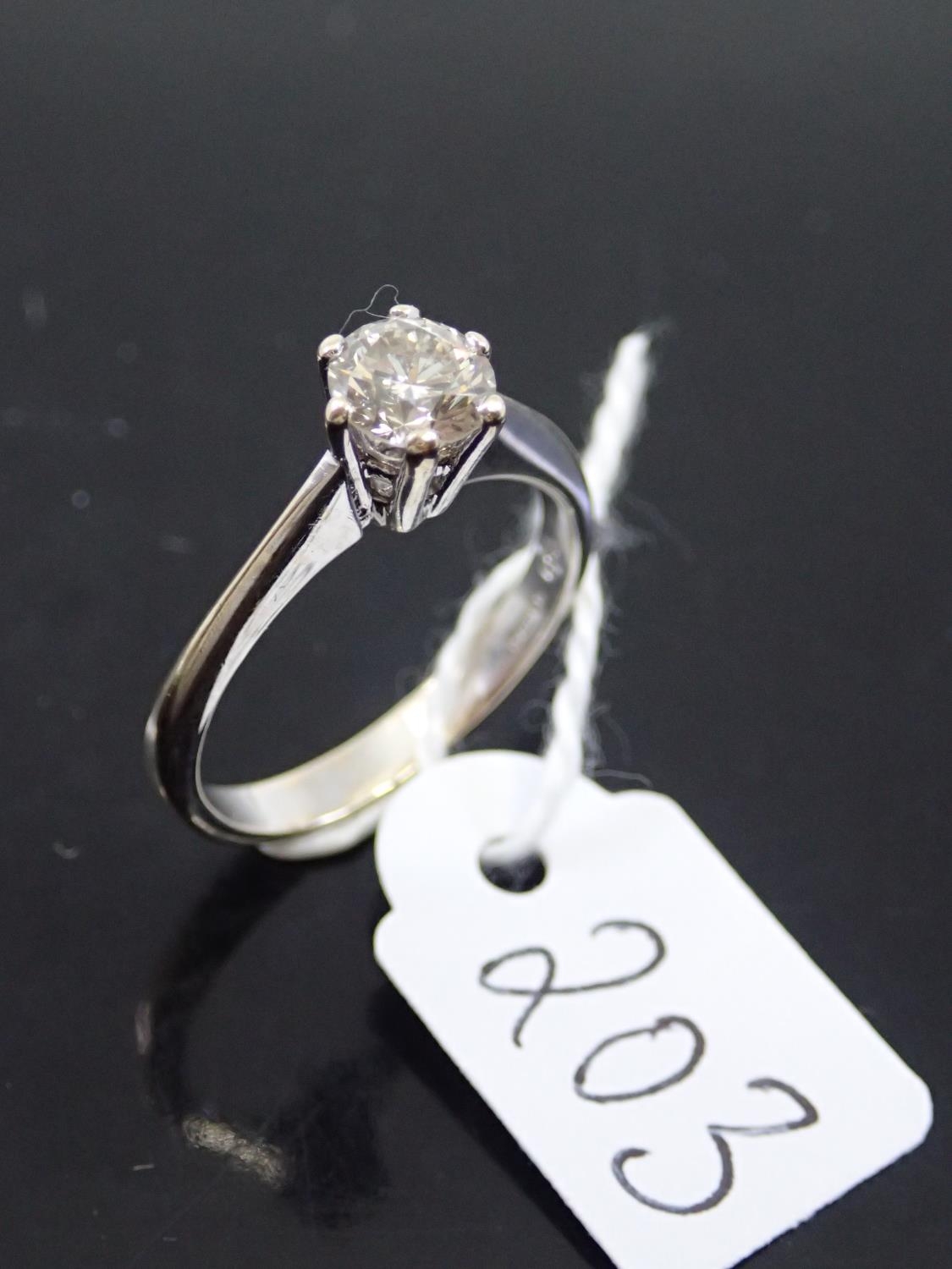A ladies 18ct white gold solitaire diamond ring finger size N