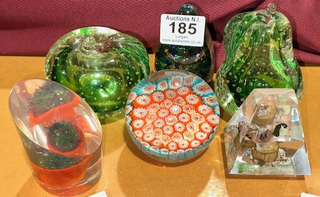Collection of Ornate Glass Paperweights Incl Wedgwood