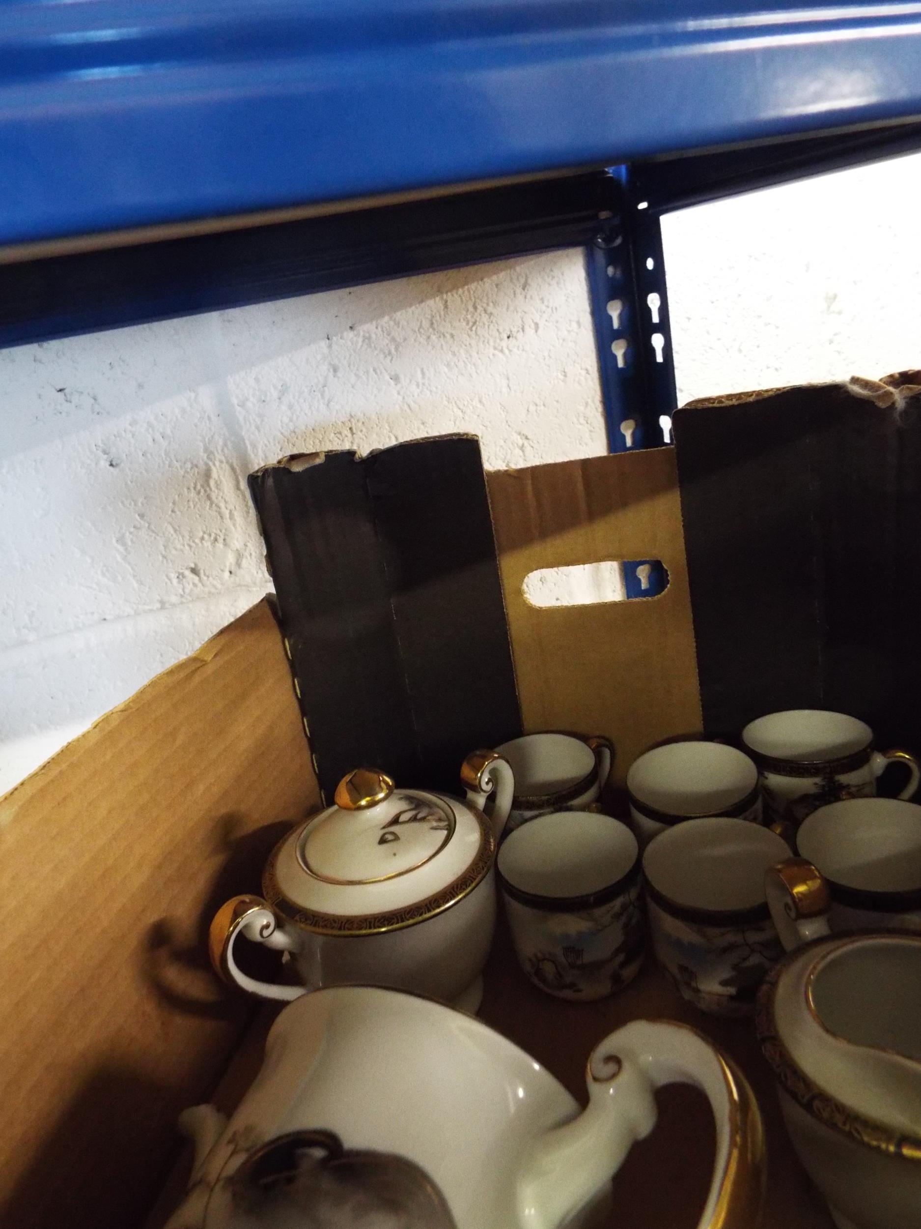 A Japanese eggshell tea-set with pagoda decoration and Geisha to base