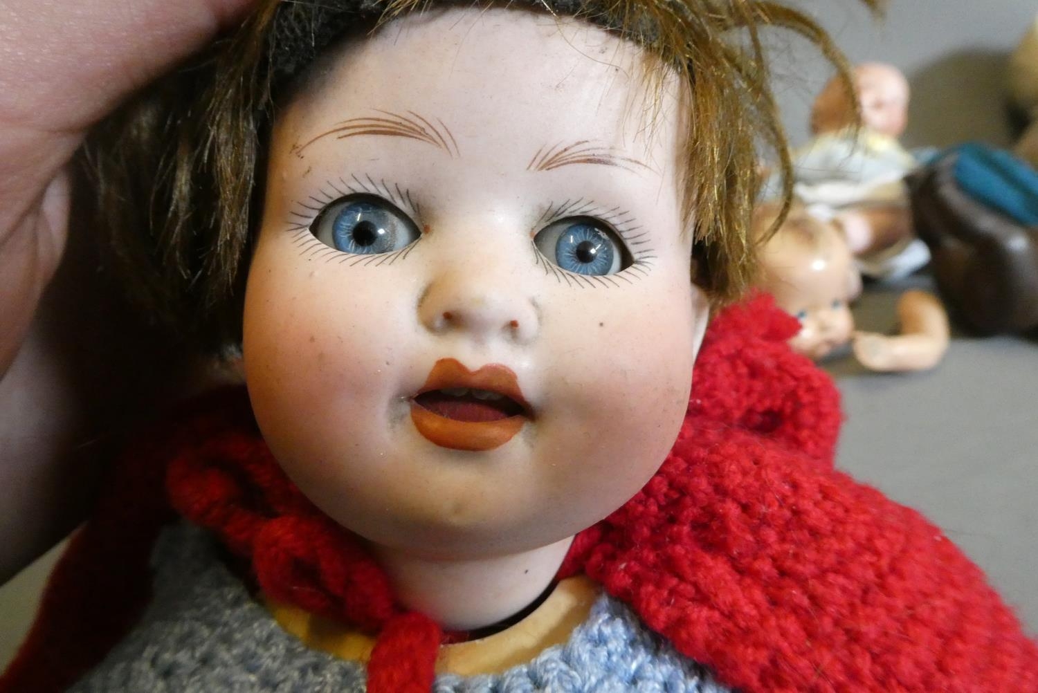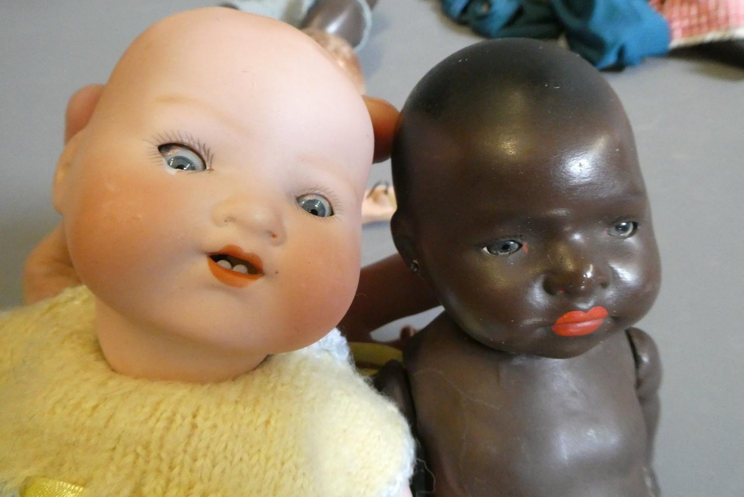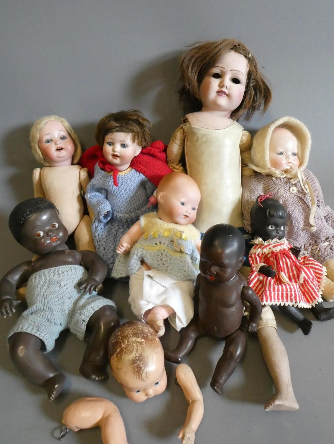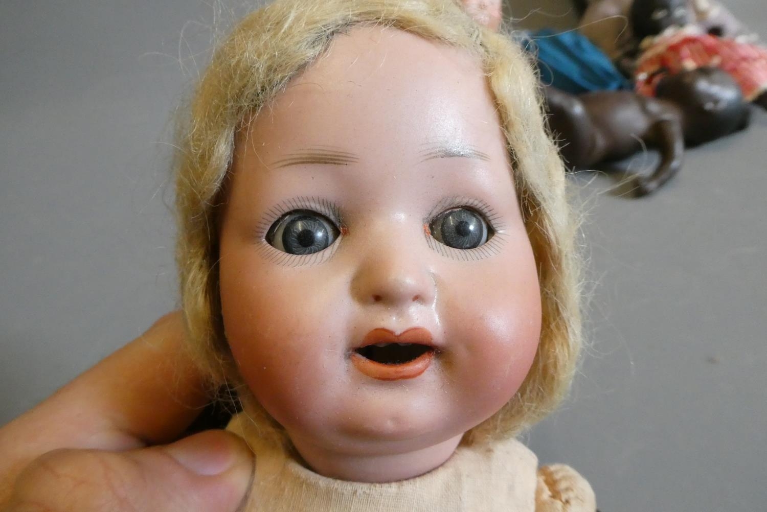 Eight vintage and early 20th century dolls, including an AM 351 baby, a Heubach Koppelsdorf 300, three other bisque dolls and others