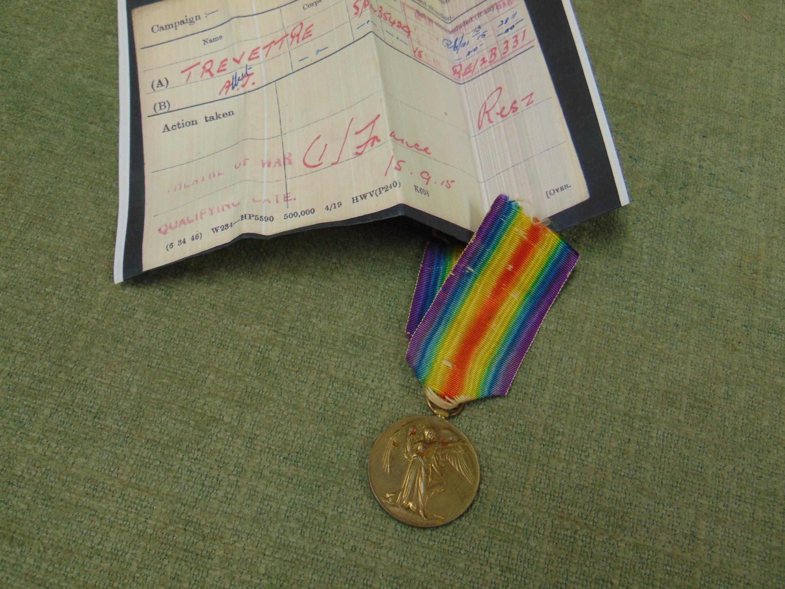 WWI Victory Medal to 35429. Spr. A. J. Trevett. R.E.