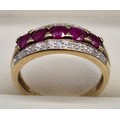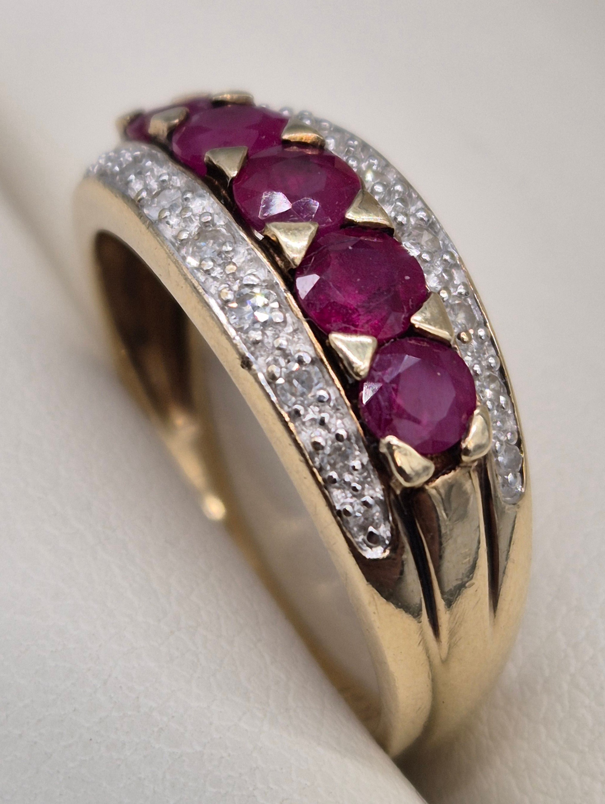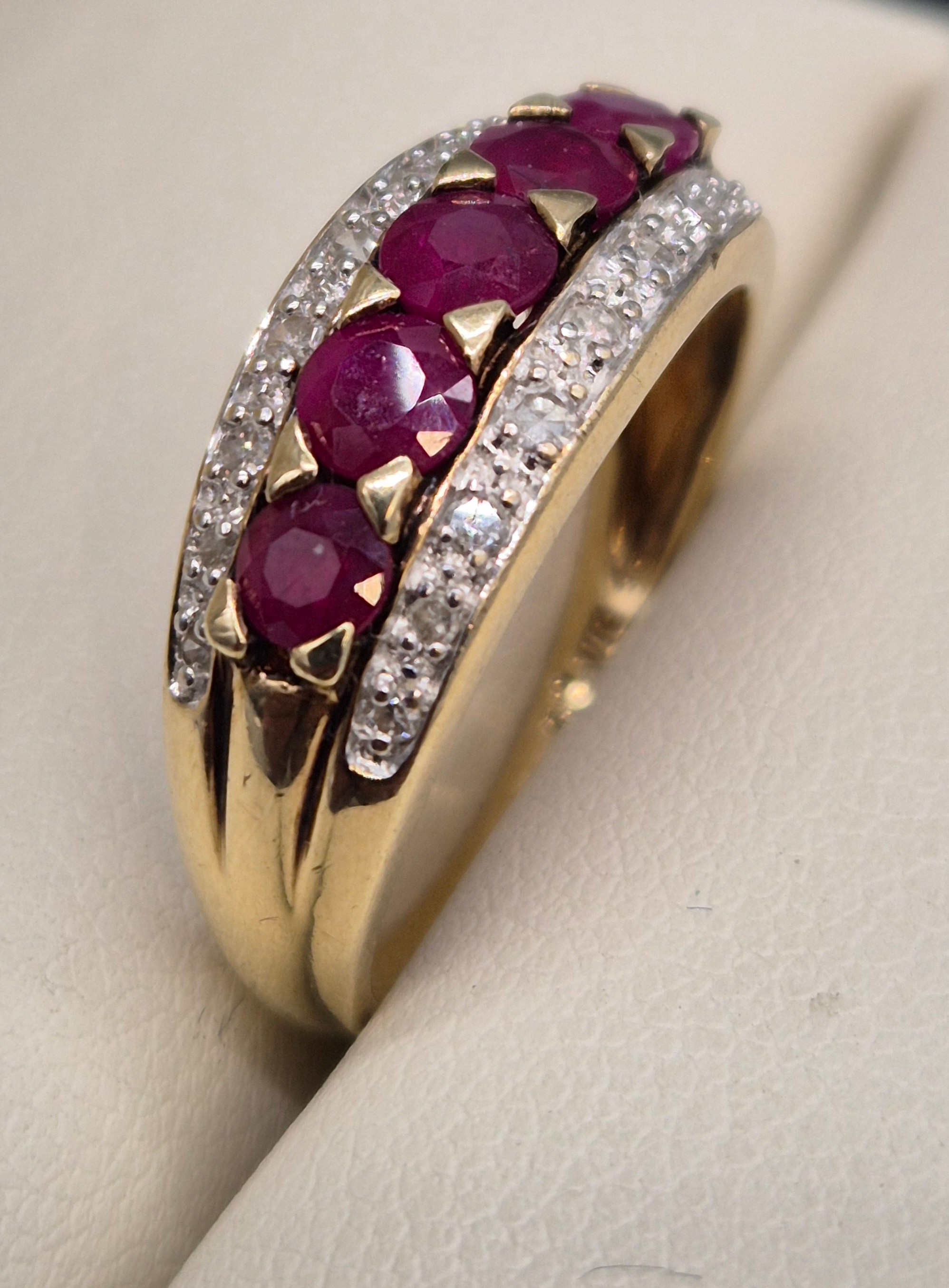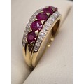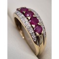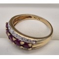 9ct yellow gold, diamond and ruby gem stone ring. Ring size P. 3.45Grams.