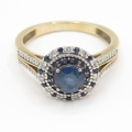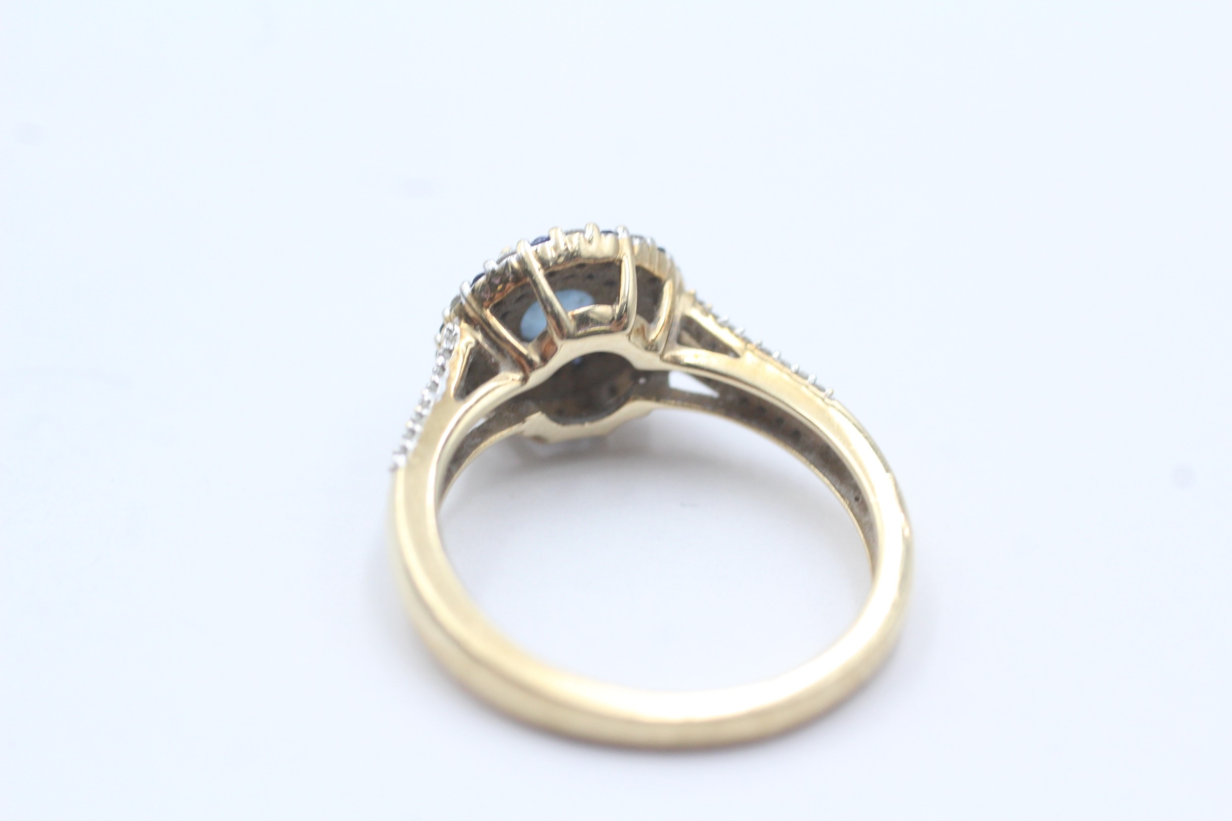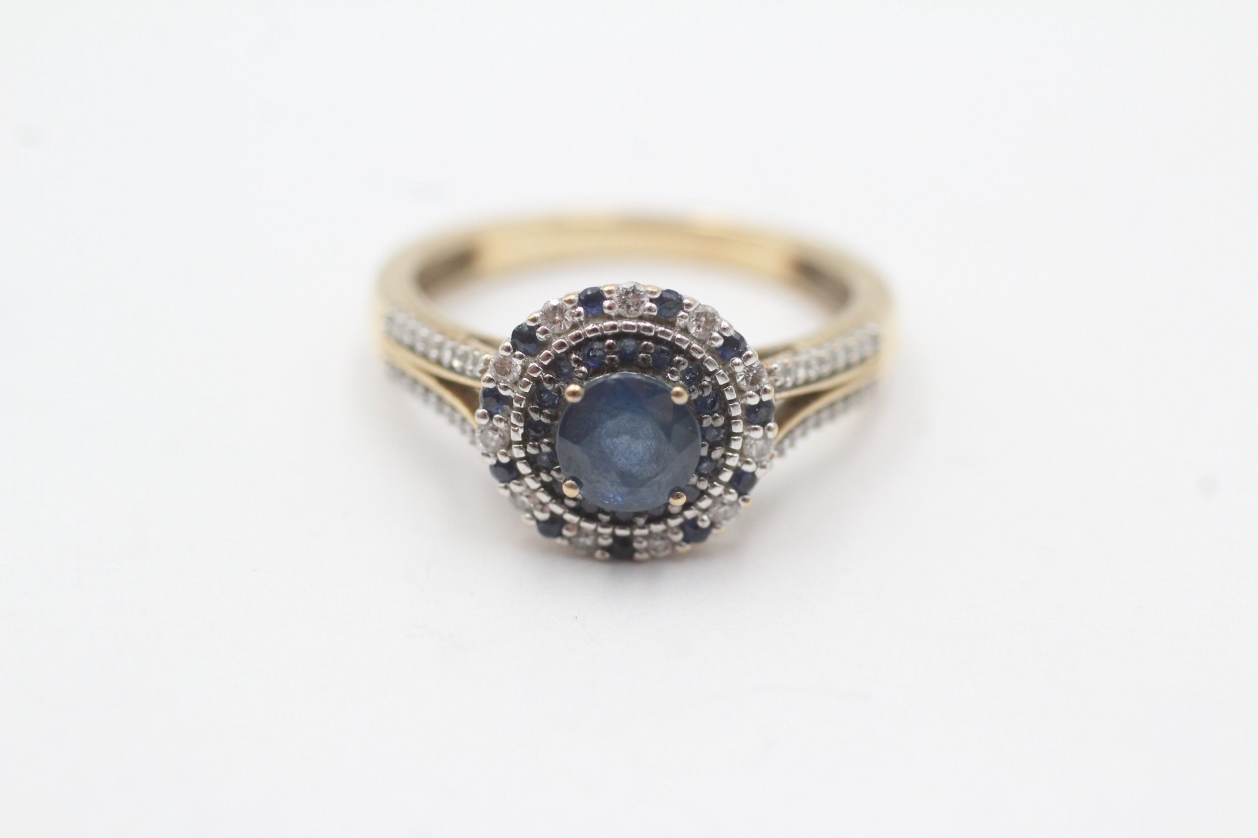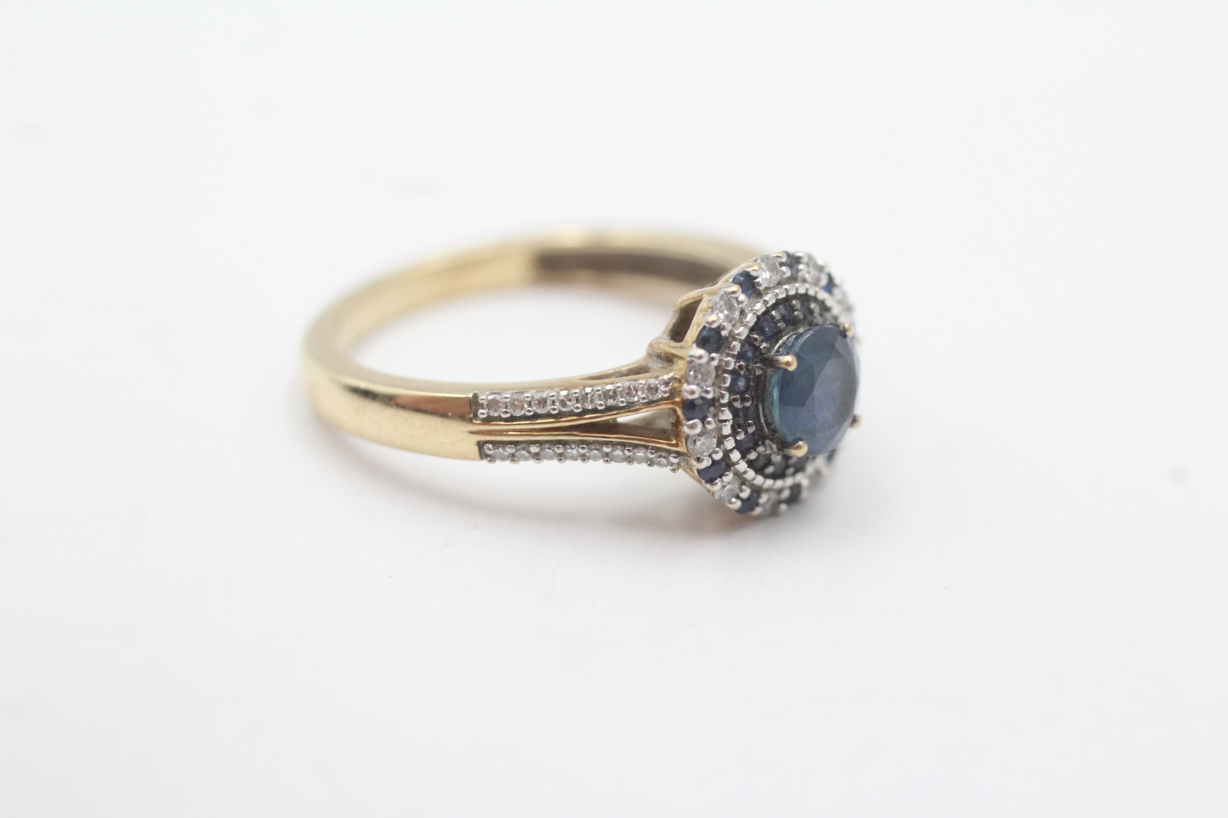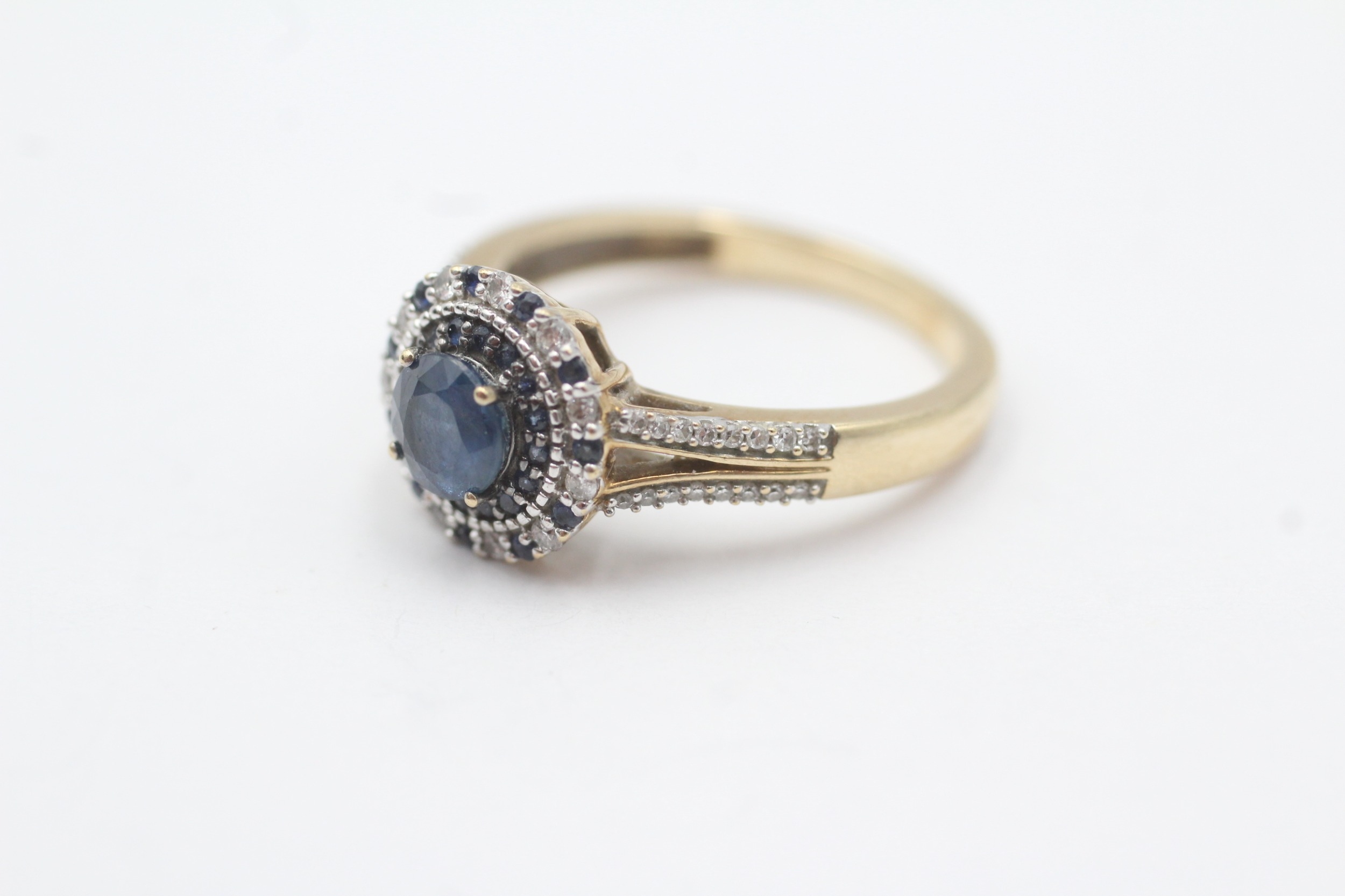 9ct gold sapphire and diamond ring (3.1g) Size M 1/2