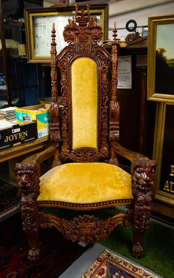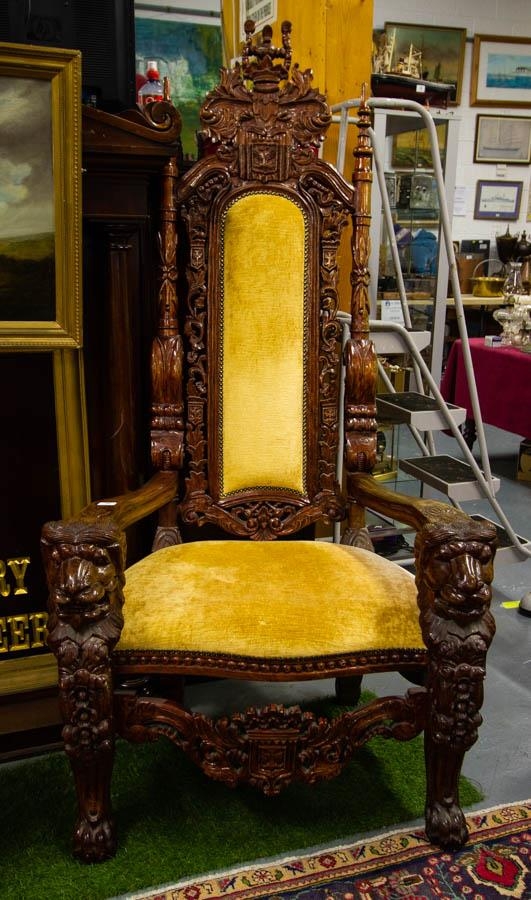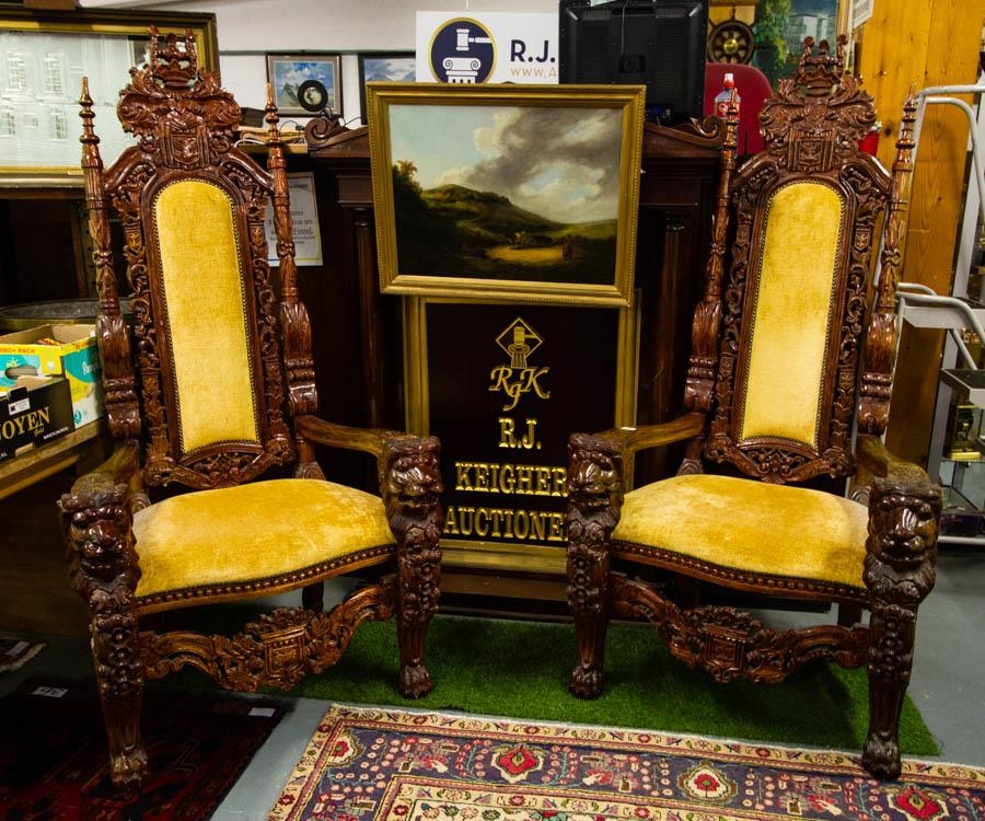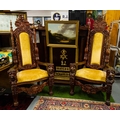 PAIR OF HEAVILY CARVED ORNATE THRONE CHAIRS