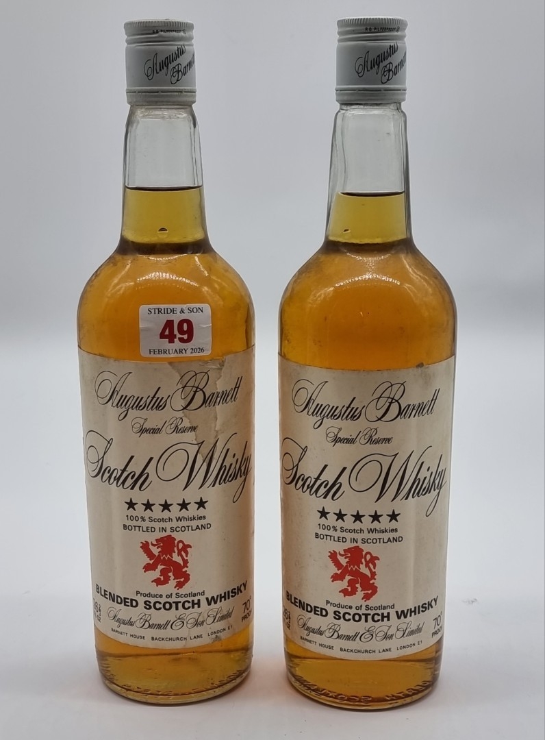 Two 26 2/3 fl.oz. bottles of Augustus Barnett Blended Scotch Whisky, 1970s bottlings. (2)