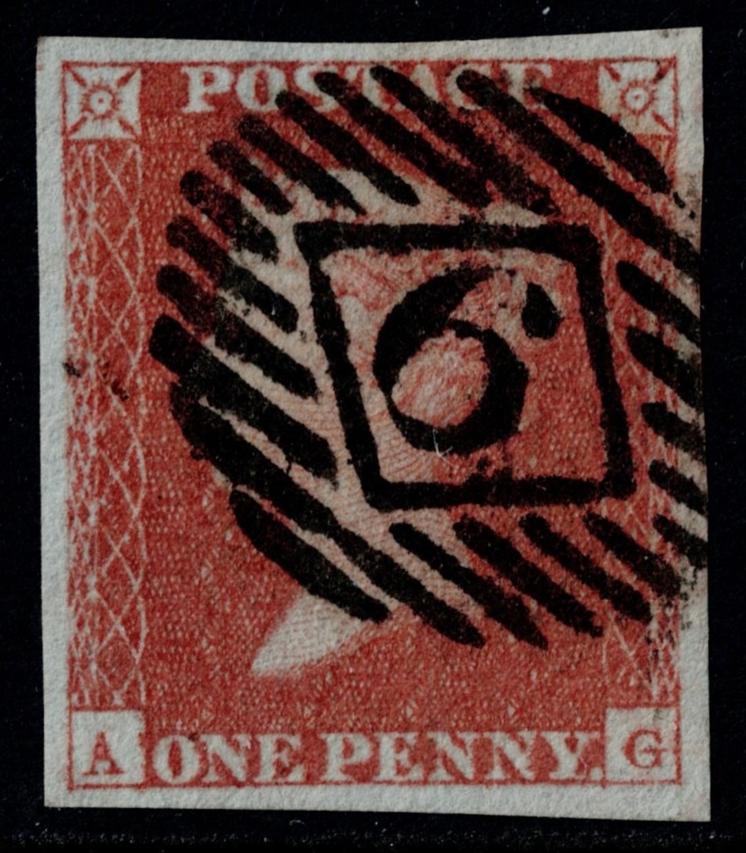 GB 1841 1d red plate 99 AG superb used large margins MISSING IMPRIMATUR inland office 6 sg8