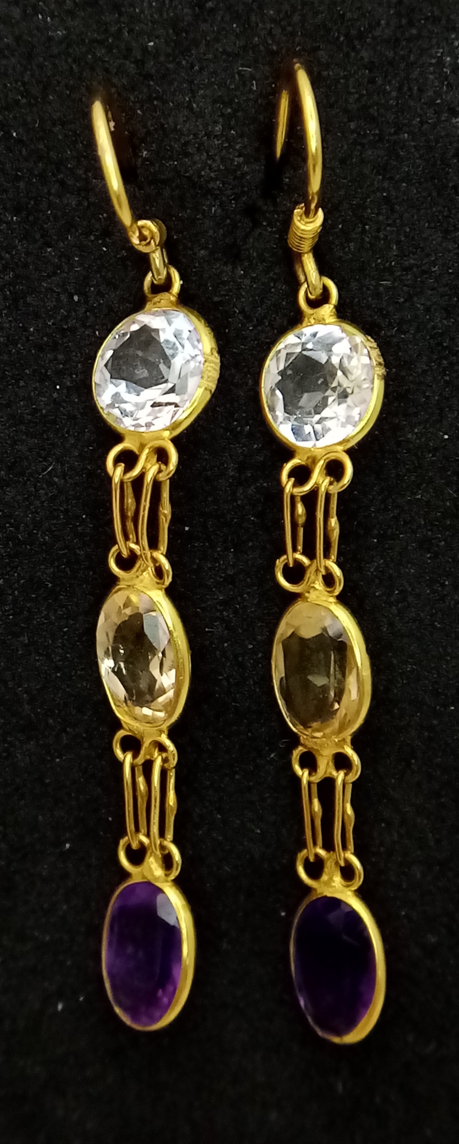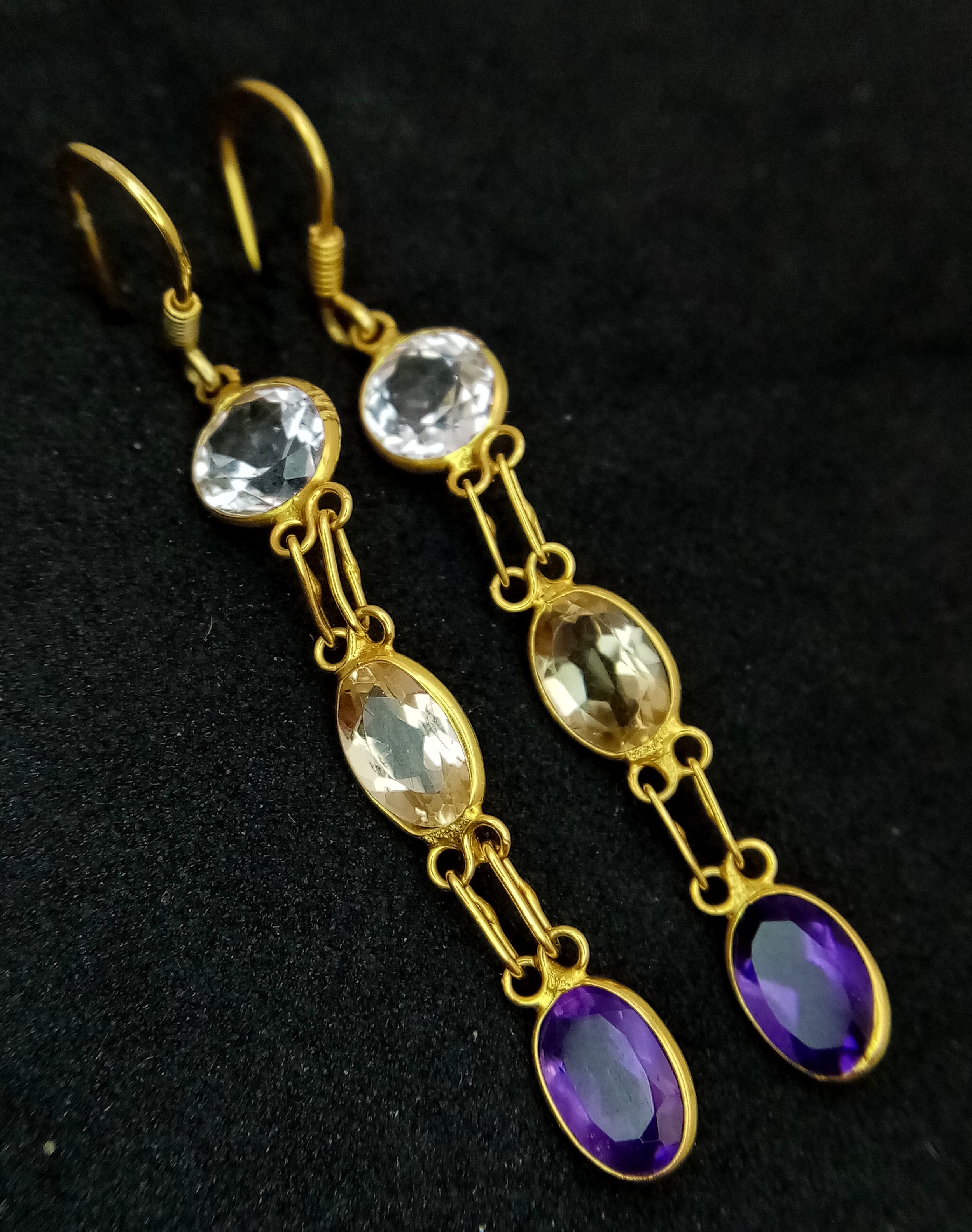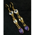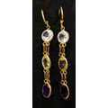 A Pair of 10K Yellow Gold Semi-Precious Stone Drop Earrings. 32mm drop. 1.23g total weight. Comes with AF Gems Certificate.