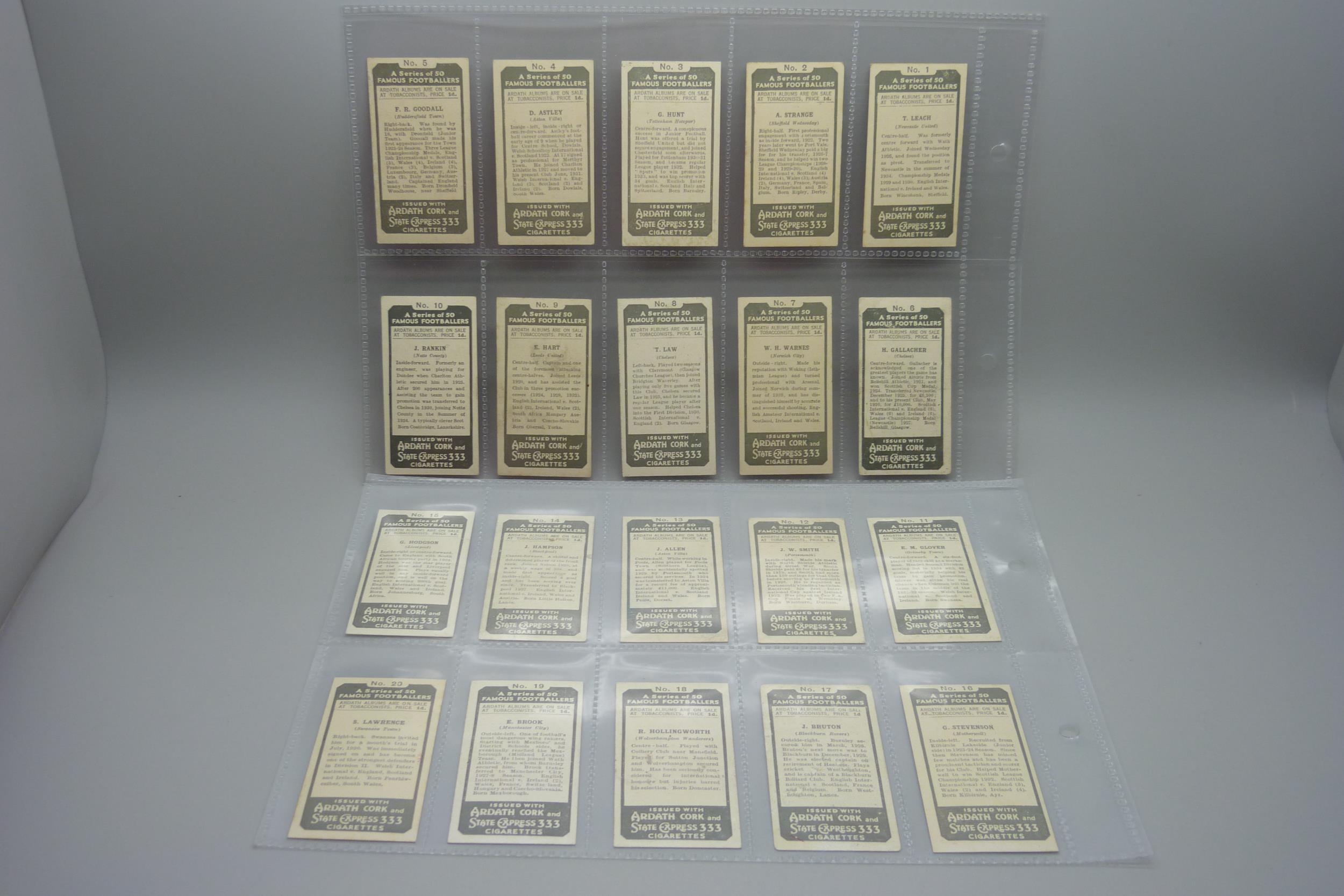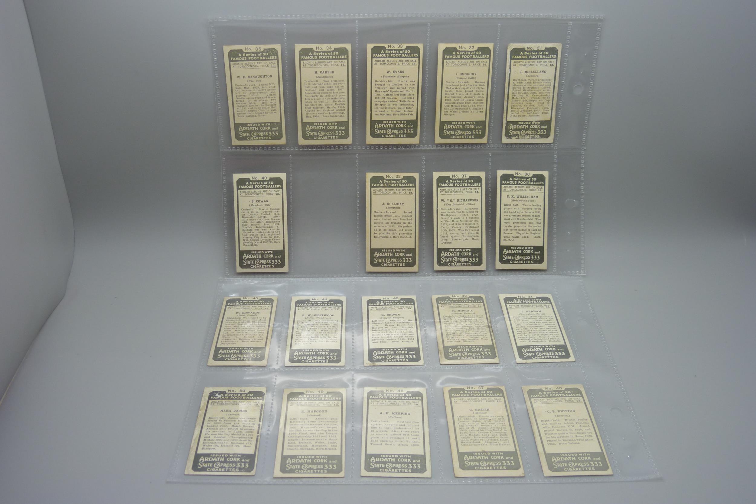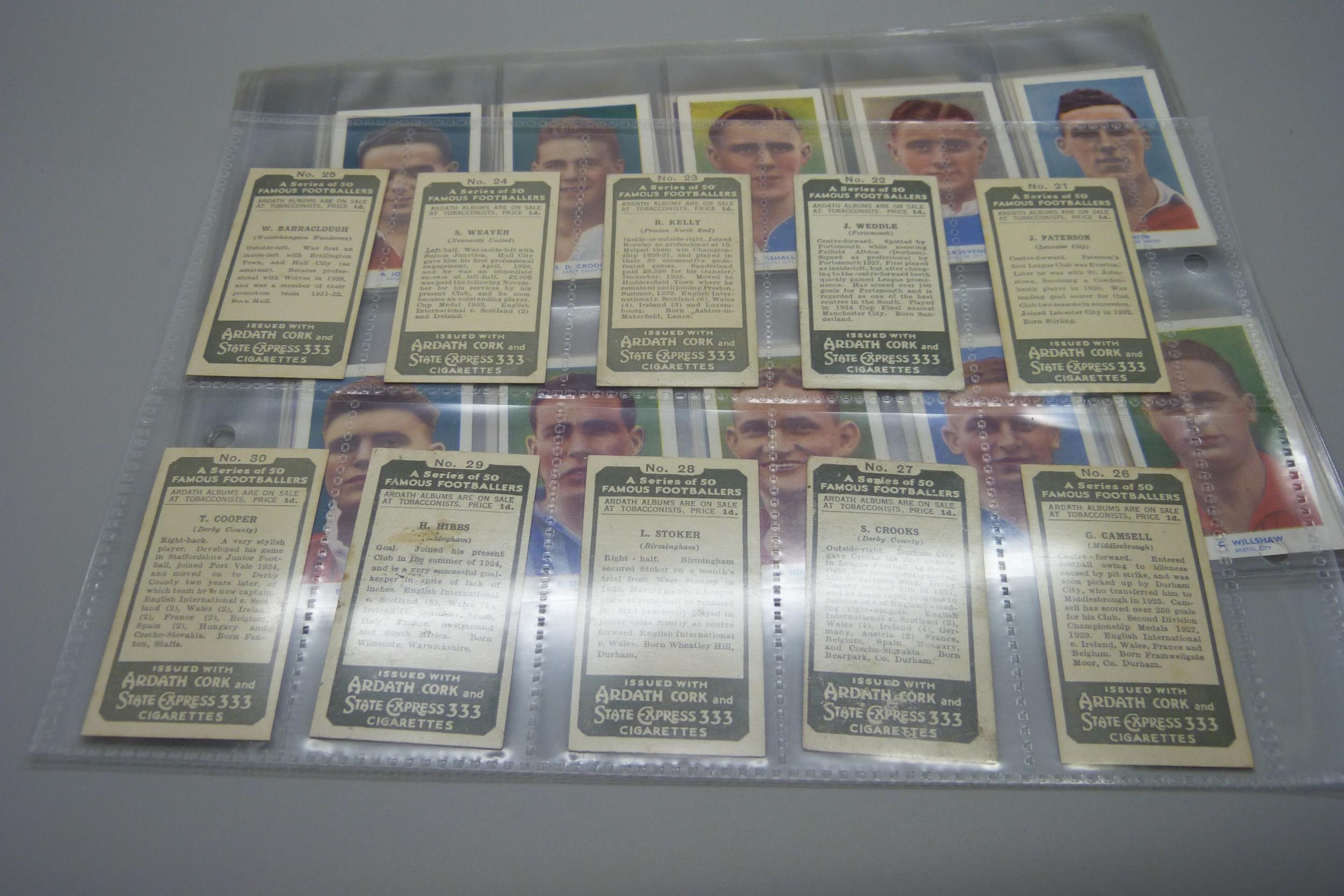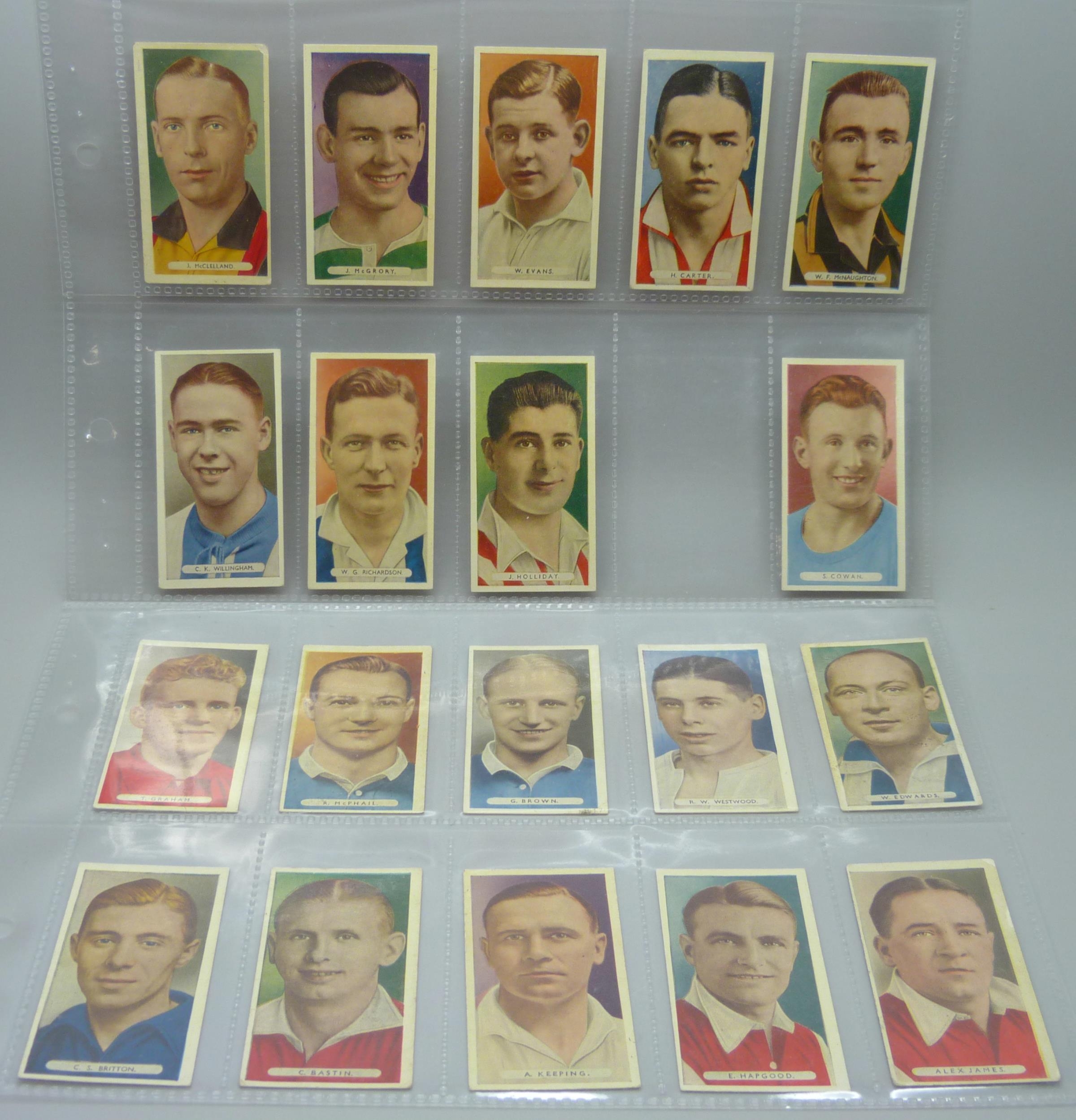Football; soccer cigarette cards, 1934 Ardath and two part sets of 1939 Hill's tobacco (both the Hy Archer type and the regular series) "Famous Footballers", 147