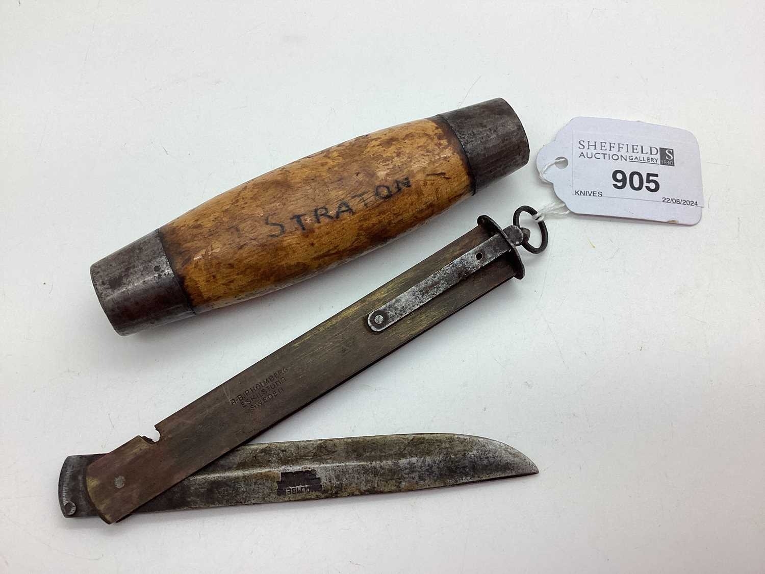 Swedish Barrel Knife, stamped "A-B.P. Holmberg Eskilstuna Sweden", barrel personalised 'Straton' (barrel 12cm long).