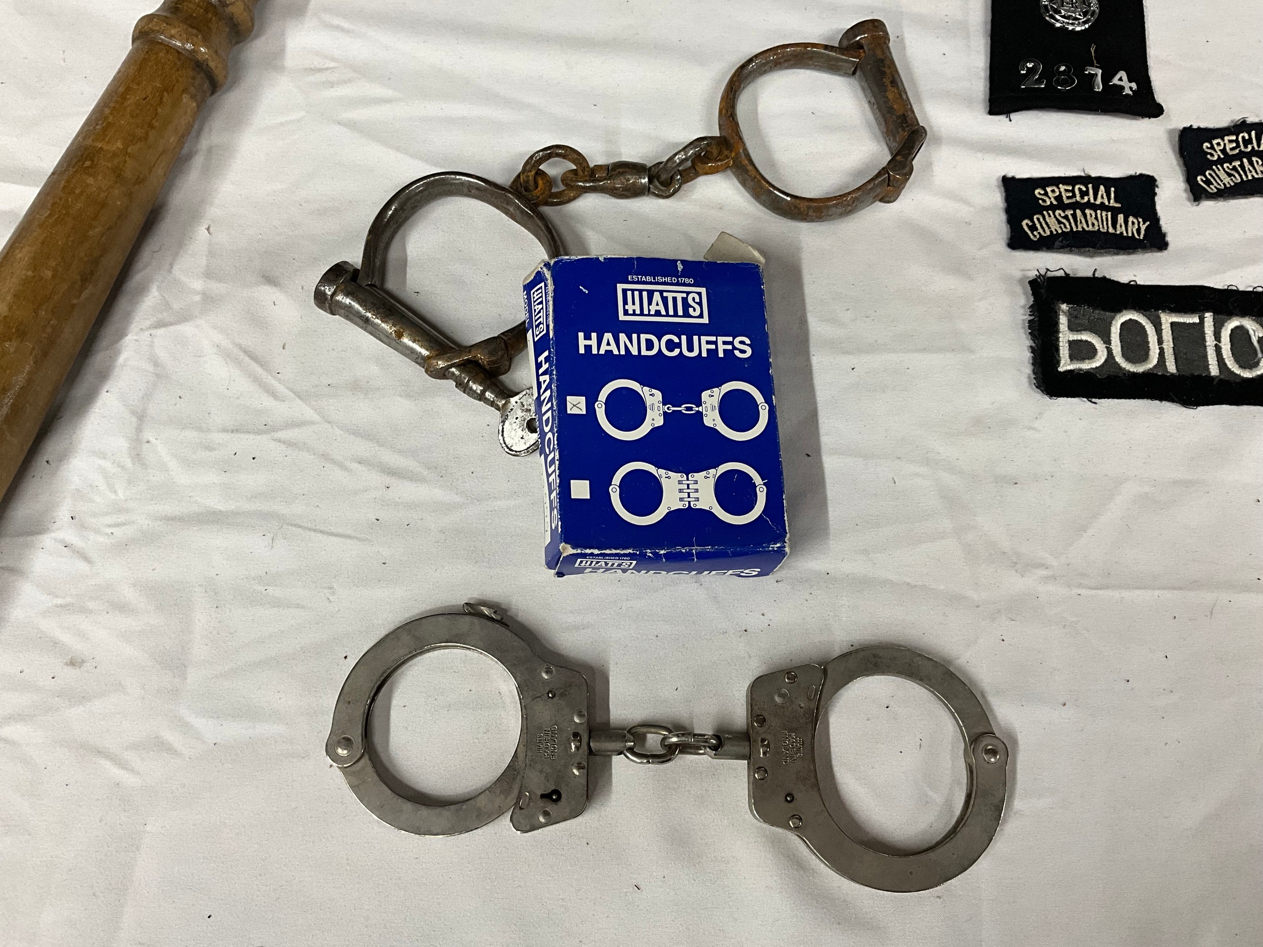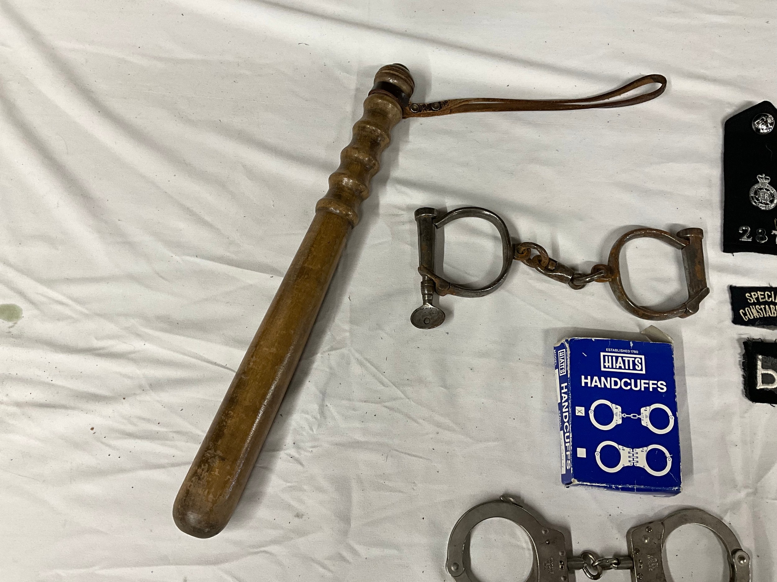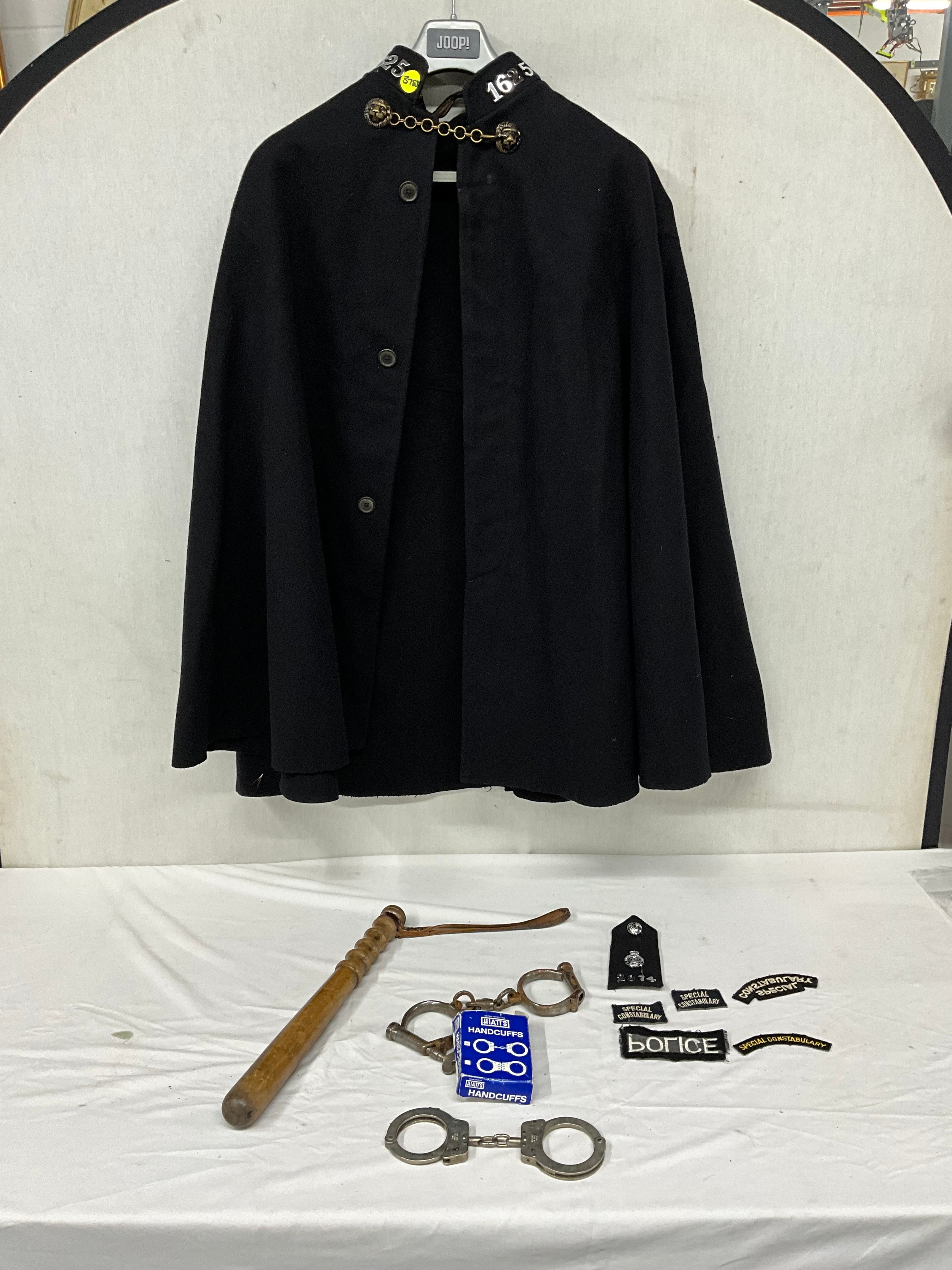 VINTAGE POLICEMANS CLOAK TRUNCHEON HAND CUFFS ETC