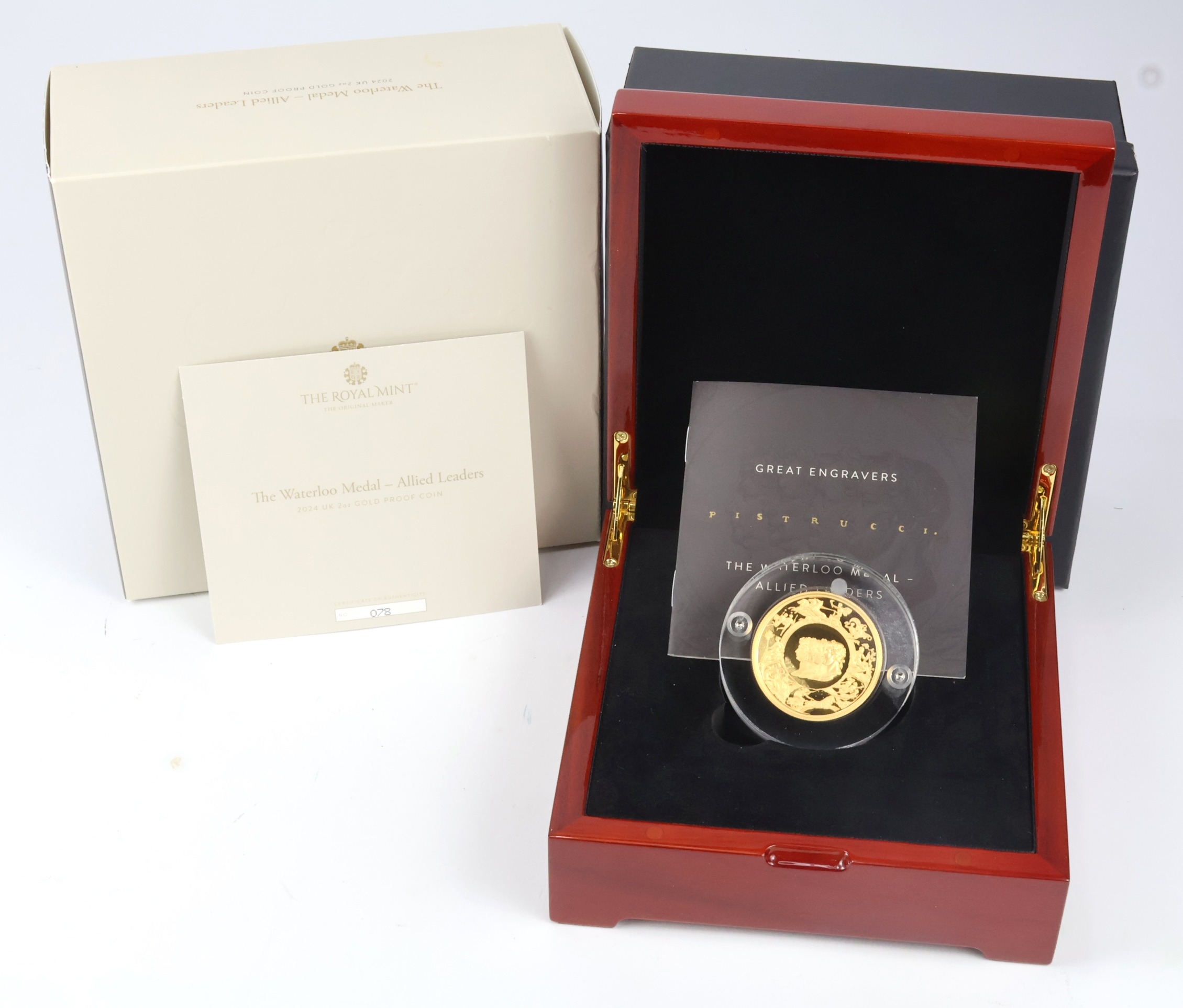 Two Hundred Pounds 2024 "Waterloo Medal" 2oz (0.999) gold proof. FDC in a plush box of issue.