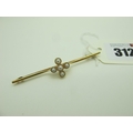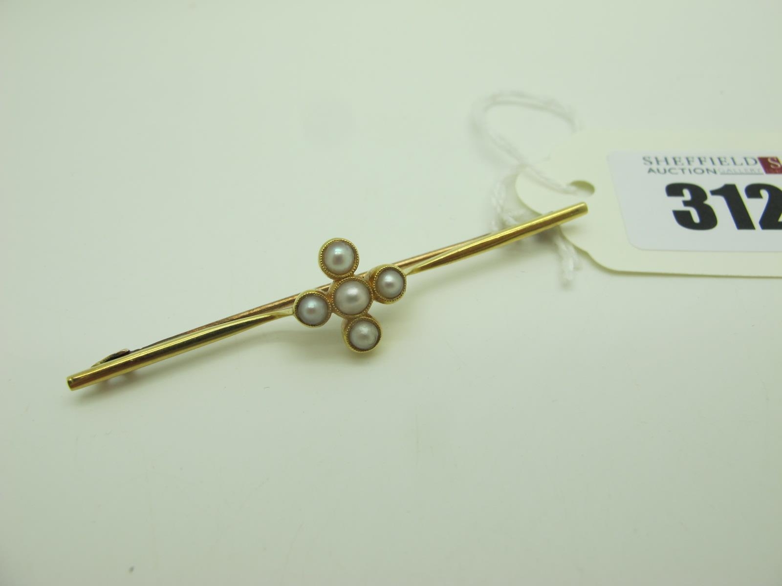 A Pearl Set Bar Brooch, collet set, between plain bar.