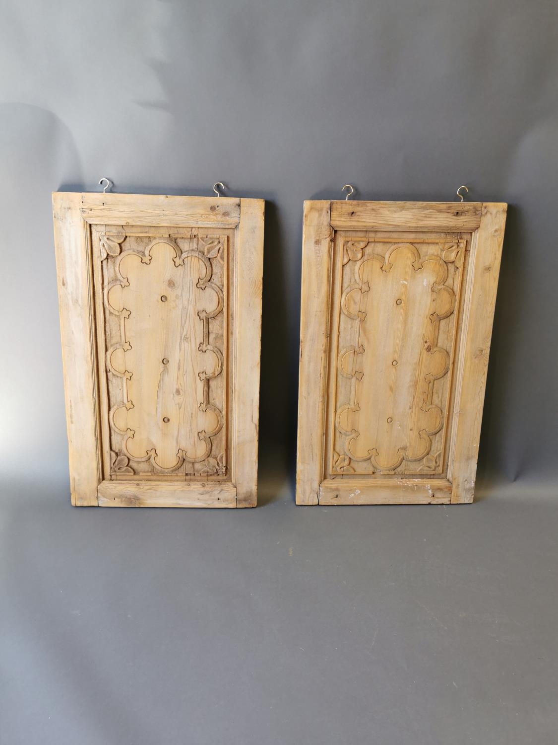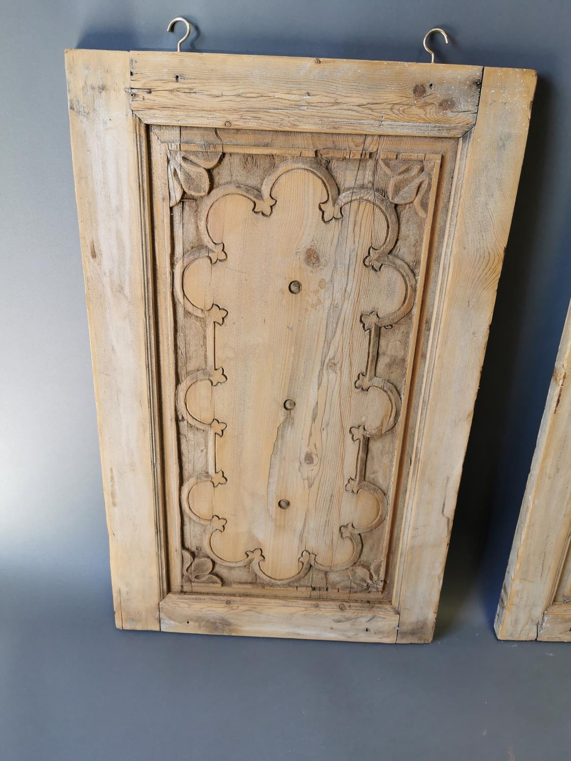 Pair of 19th C. carved pine wall hanging panels {87 cm H x 54 cm W}.