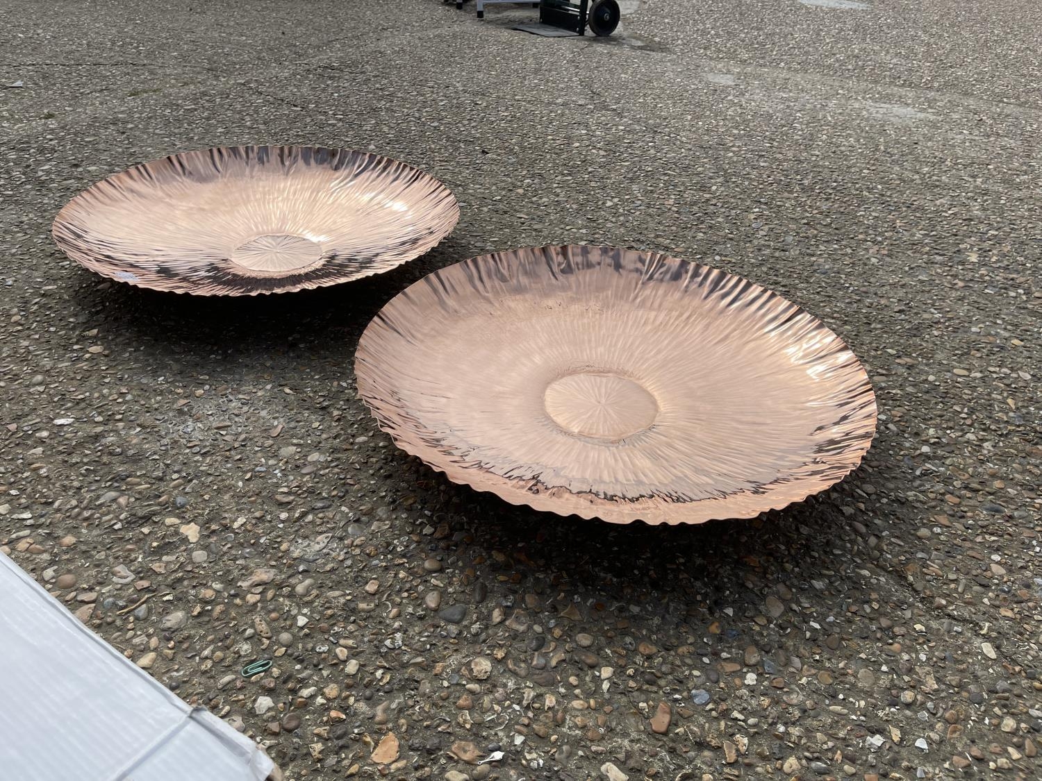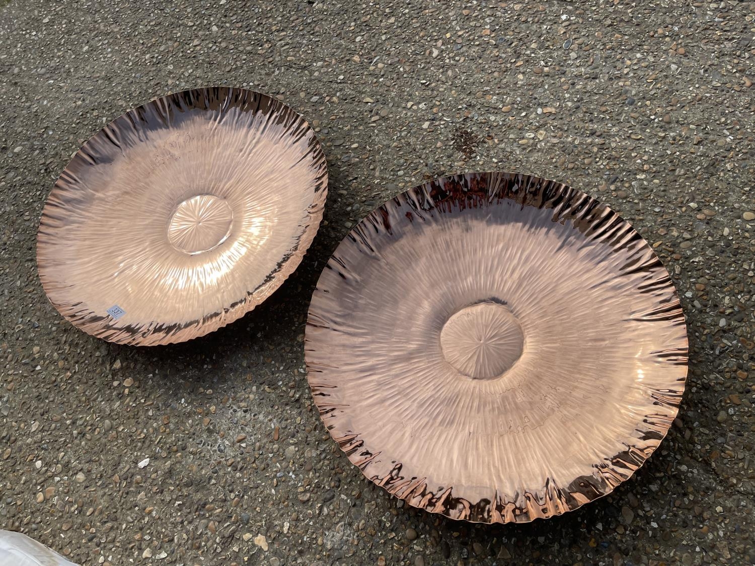 A pair of new large textured copper platters