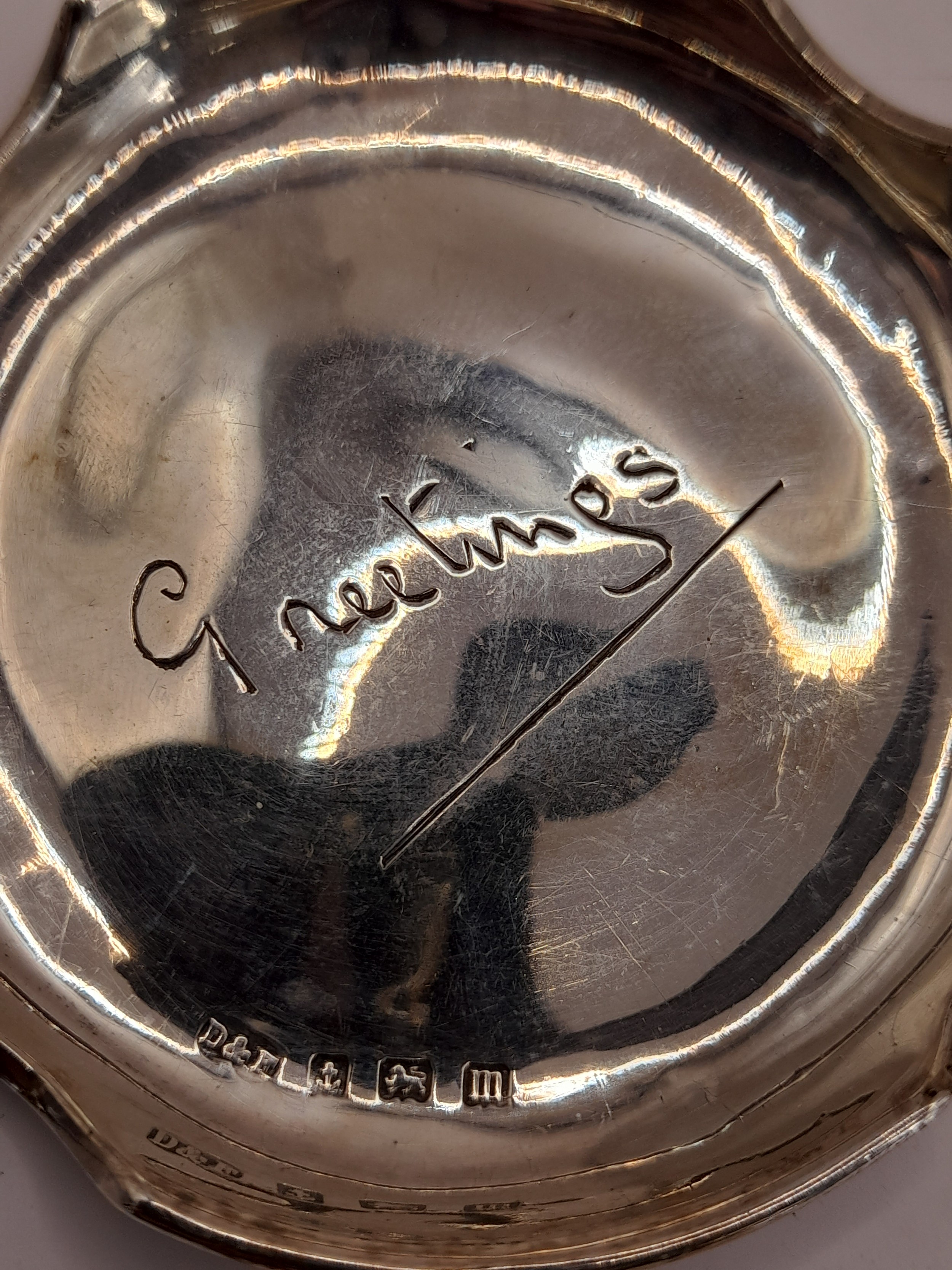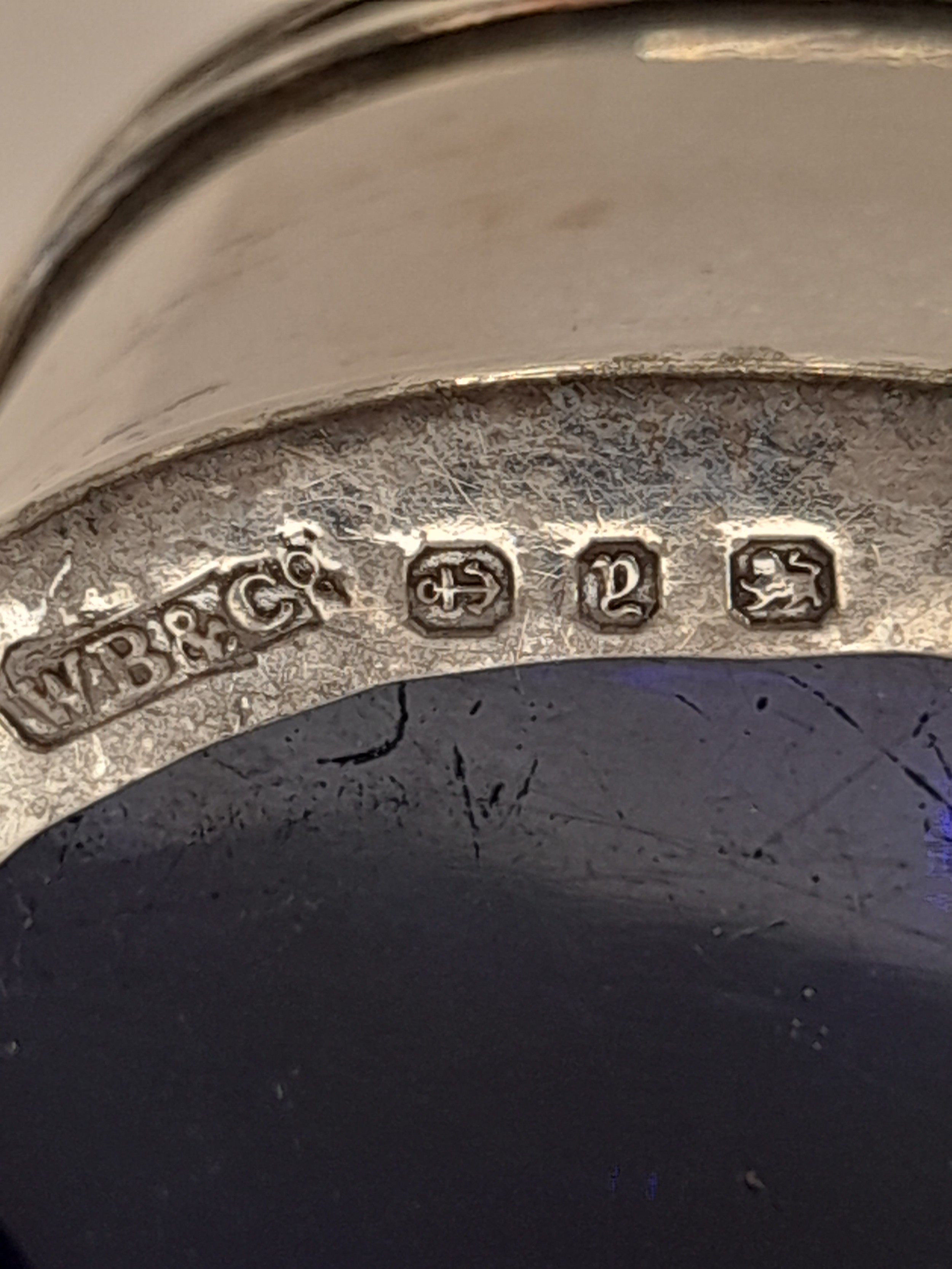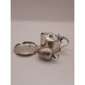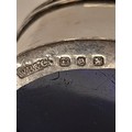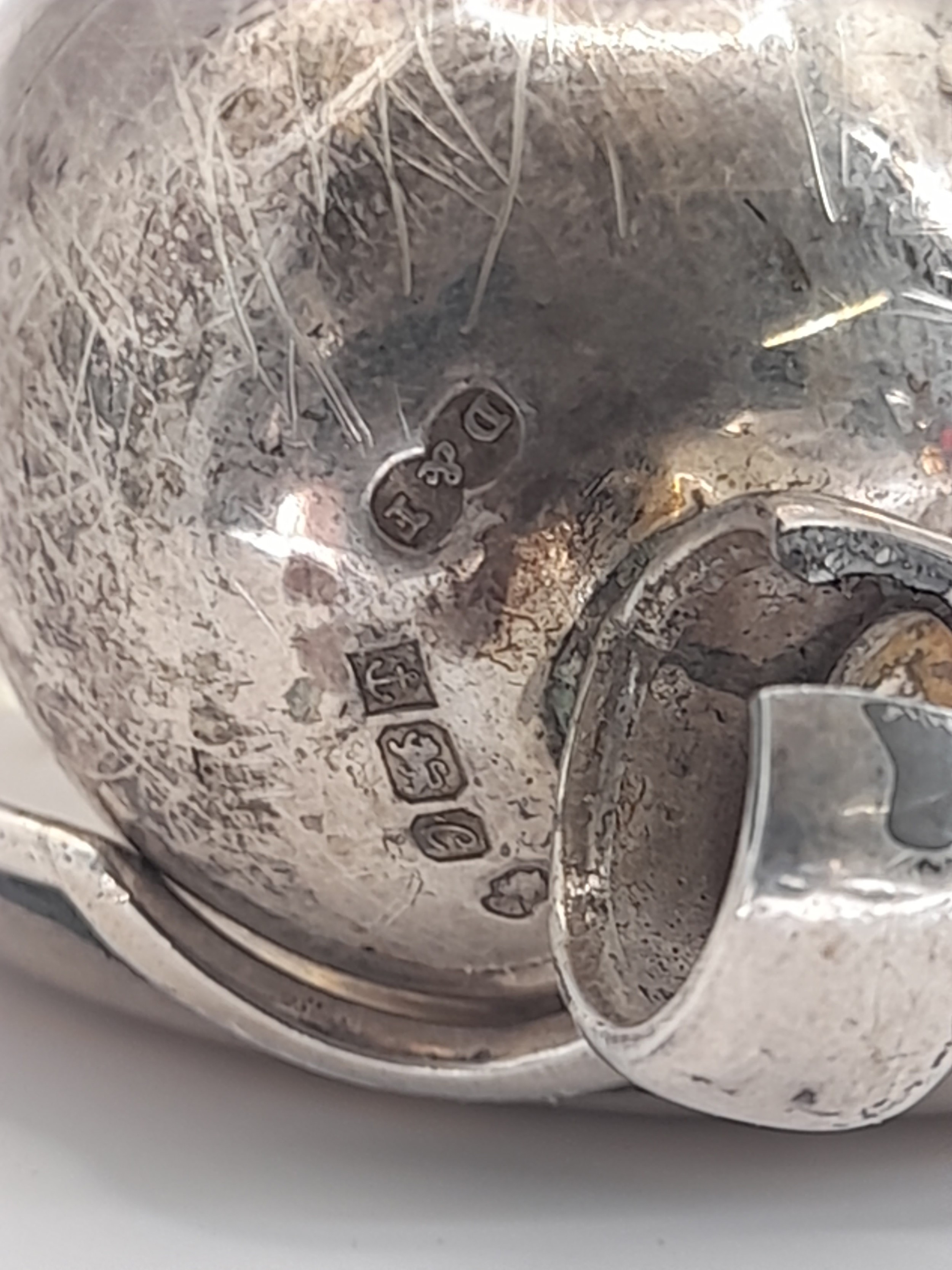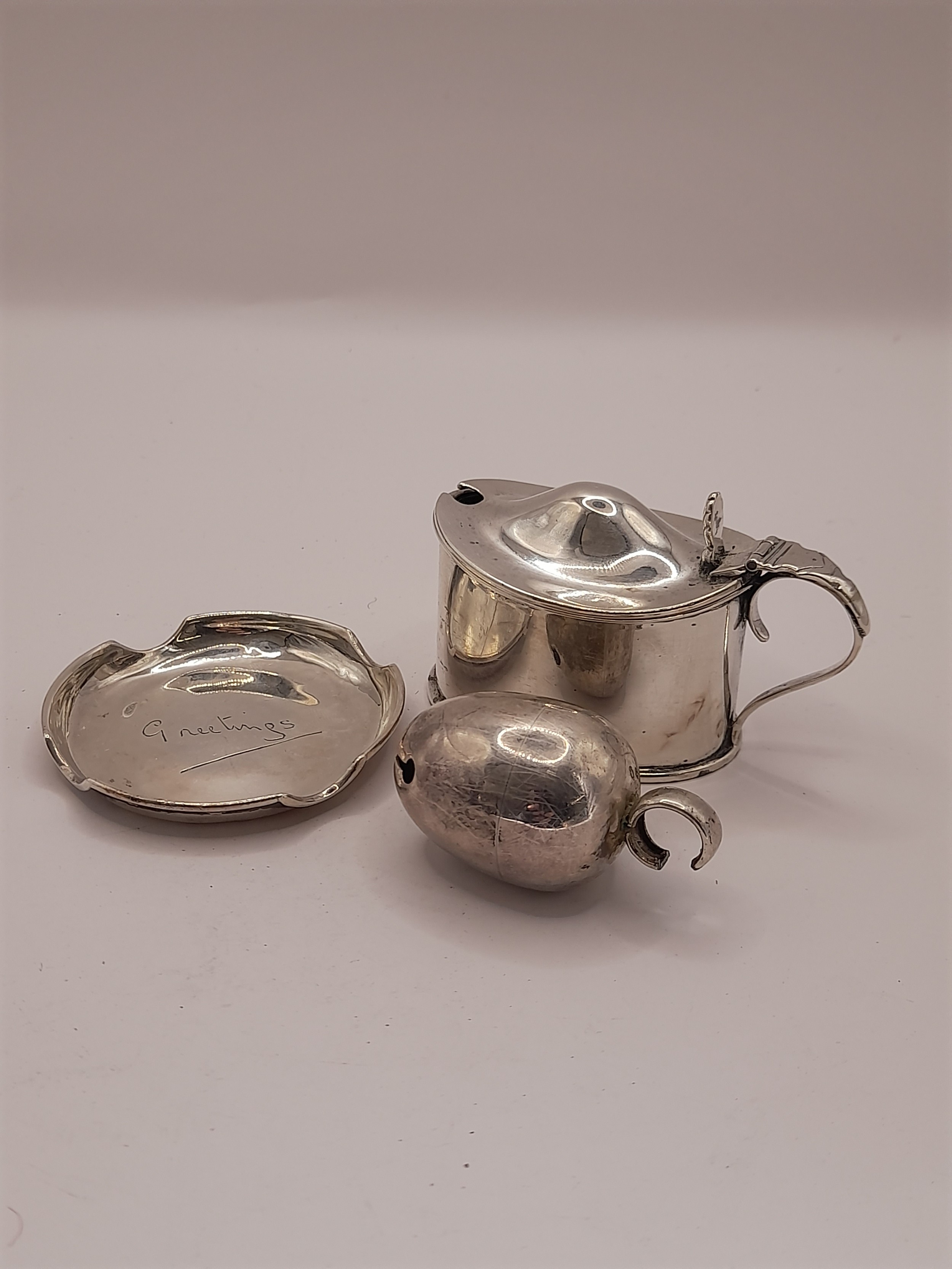 Hallmarked Silver Mustard Pot with Blue Glass Liner, Hallmarked Silver Bell and a Hallmarked Silver Pin Dish (3)
