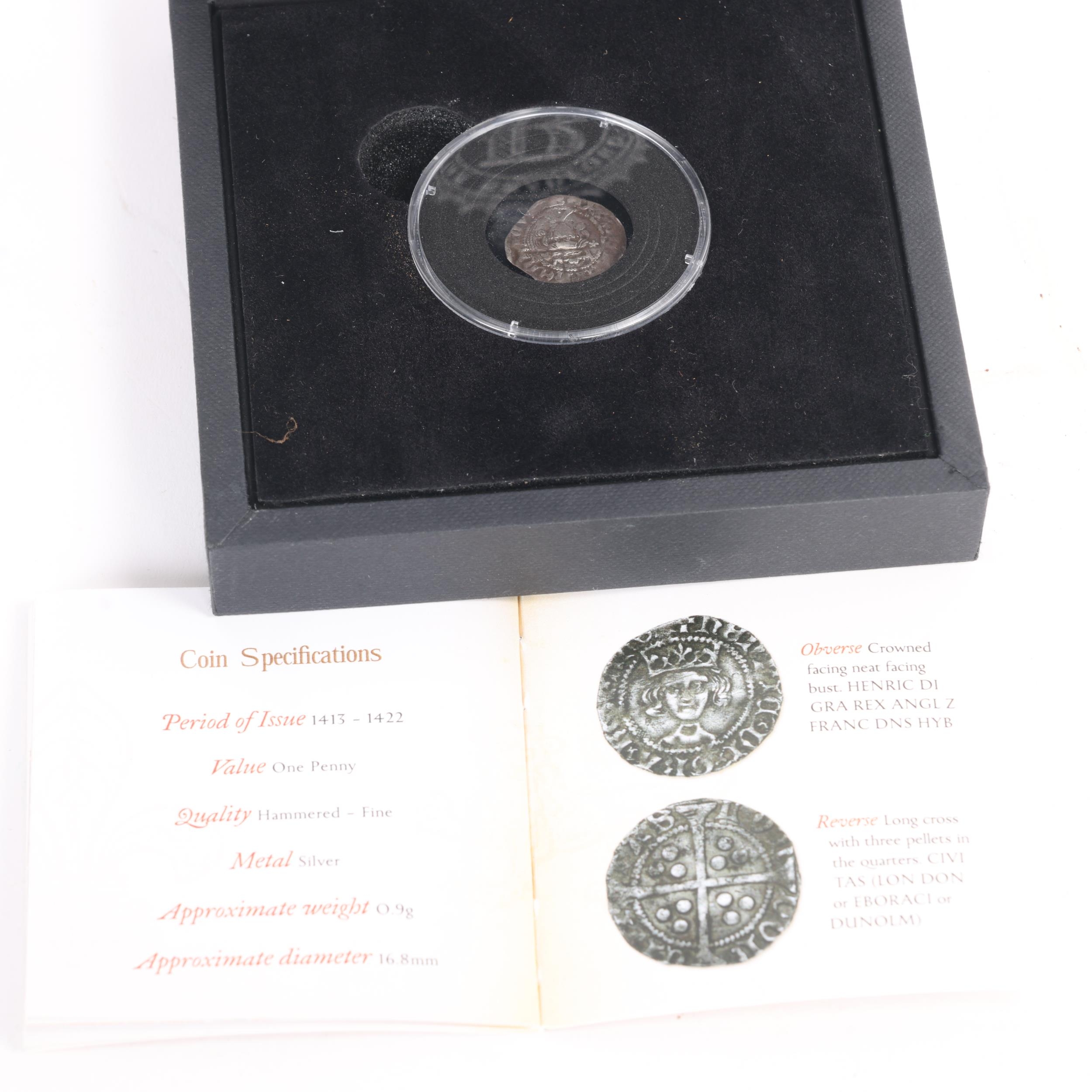 A Henry V (1413-1422) long cross silver penny, approx .5g, approx diameter 16.8mm, in capsule and presentation box