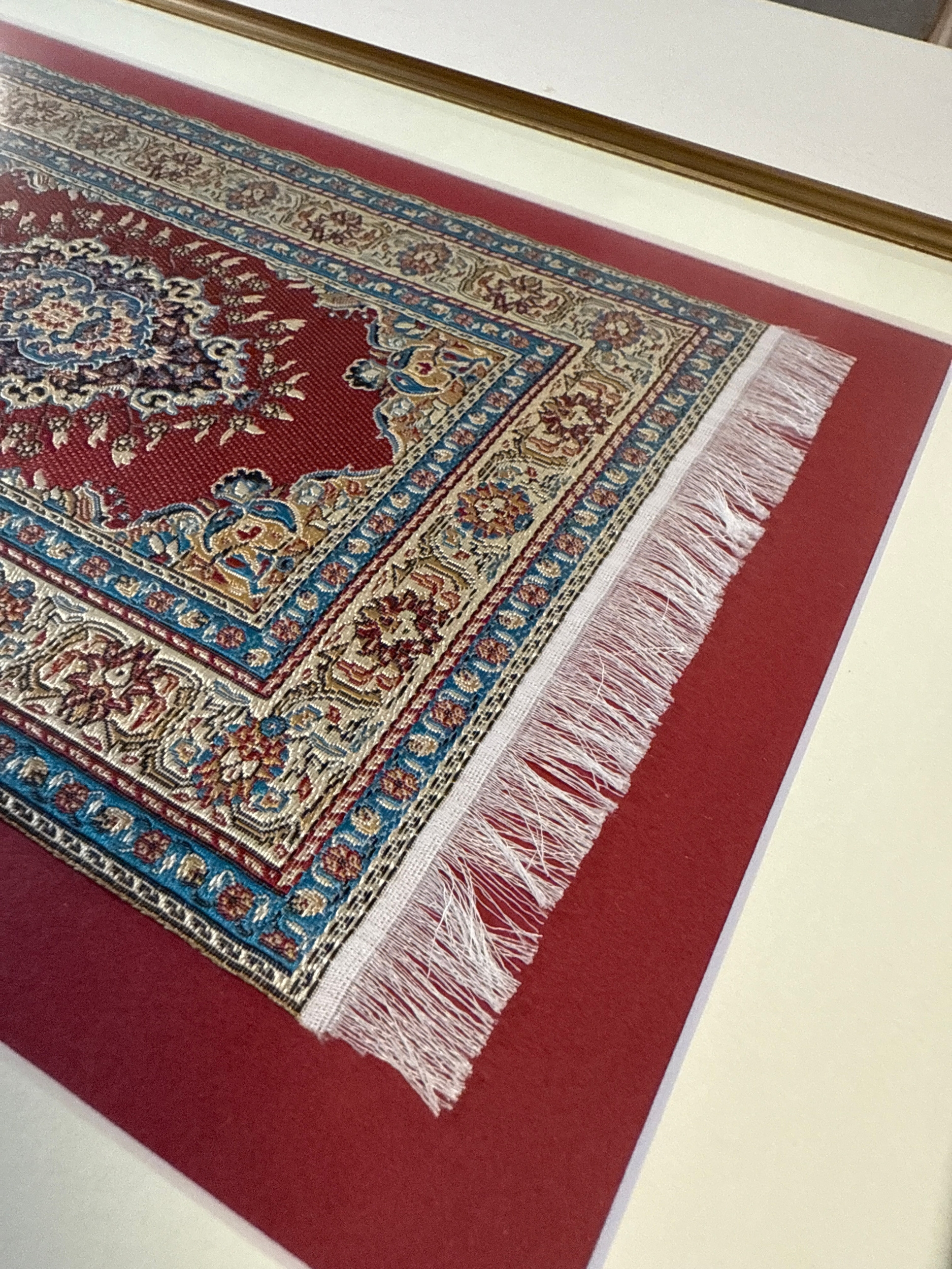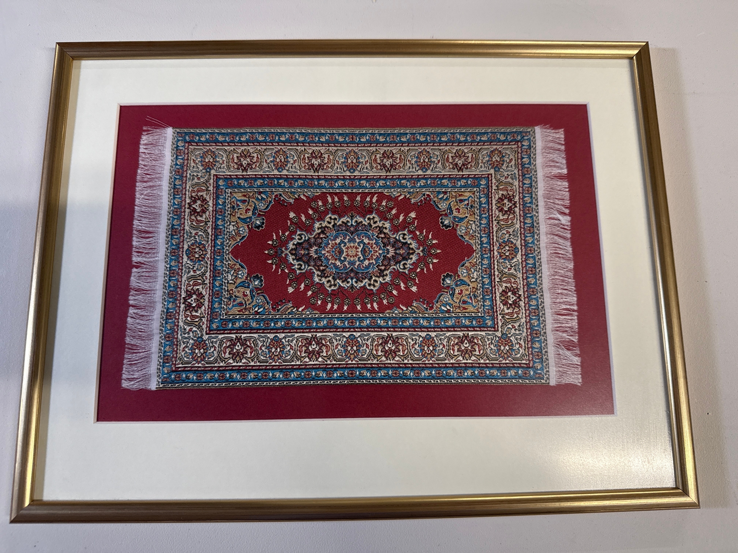 Framed Dollhouse Miniature Woven Rug with Fringe