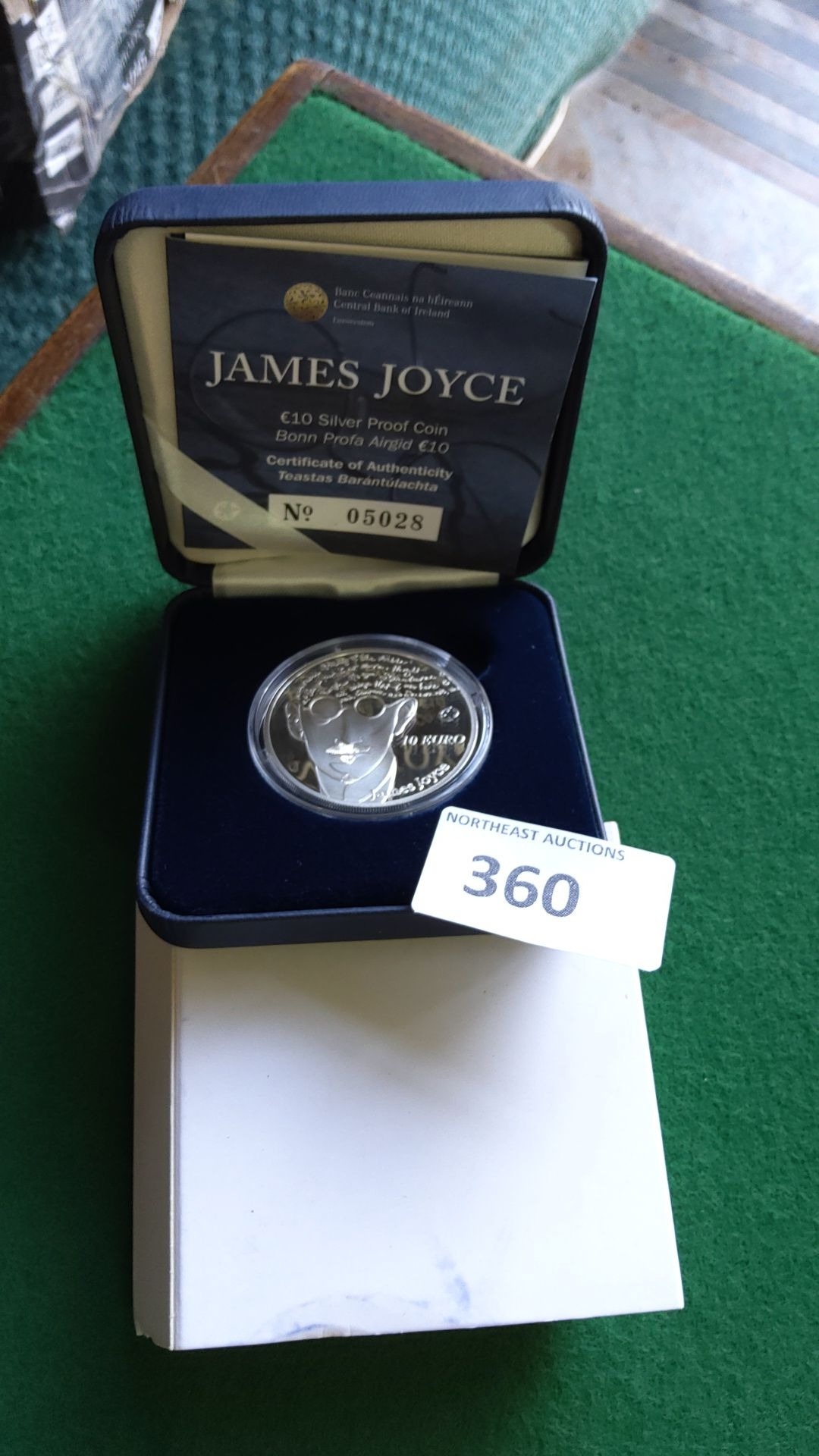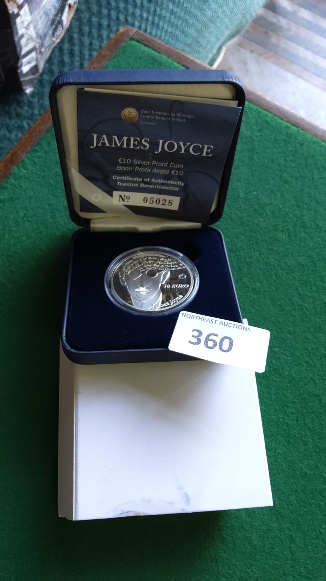 Silver Proof 10 euro Coin with Certificate of Authenticity from Central Bank of Ireland, in original presentation box.