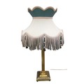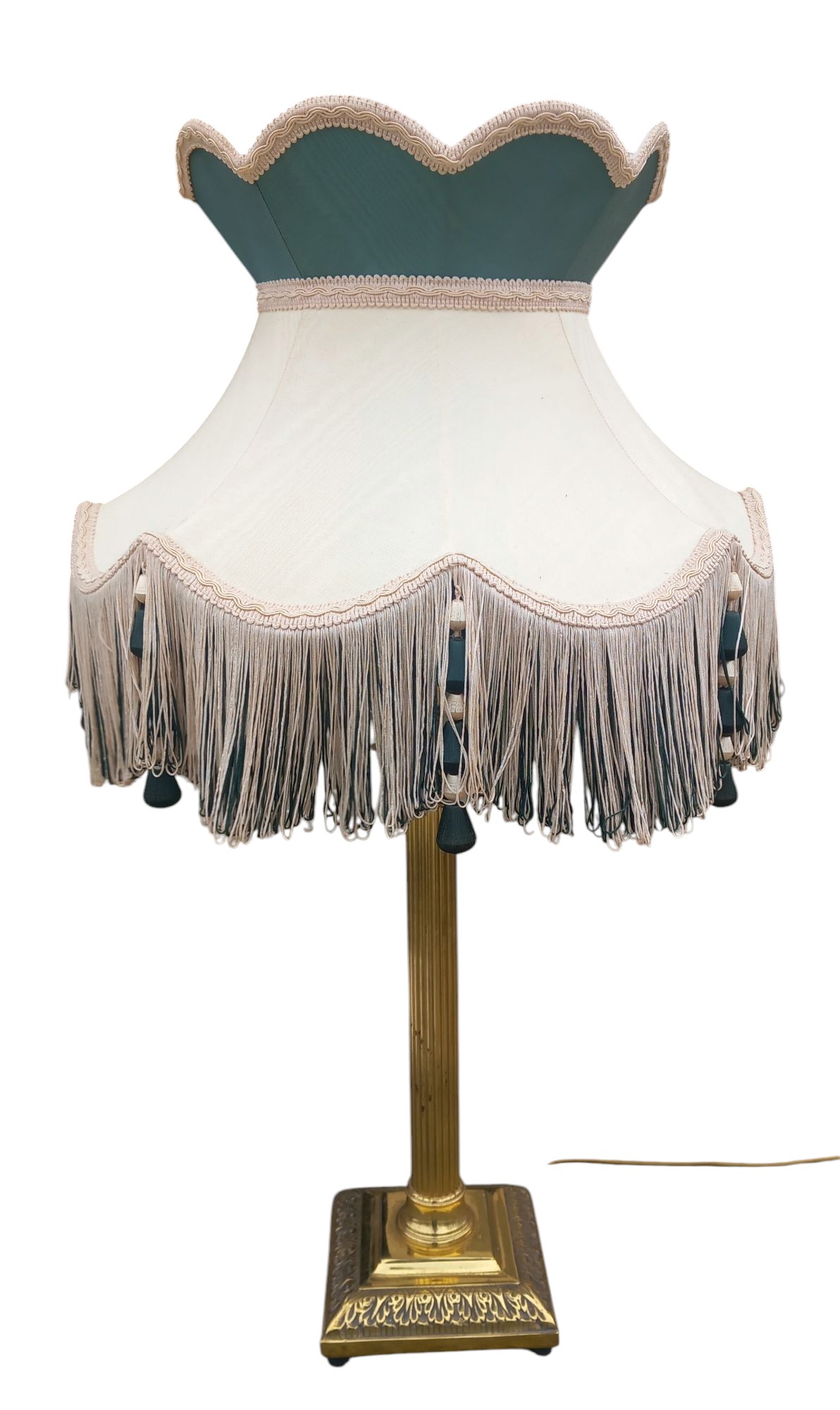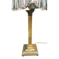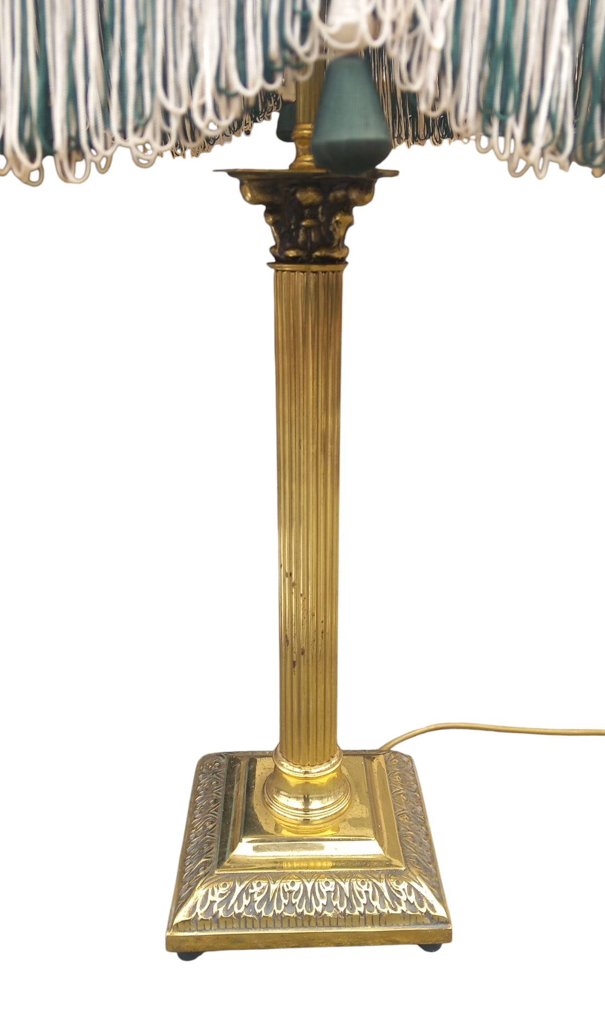 A BRASS CORINTHIAN PILLAR LAMP AND SHADE