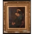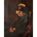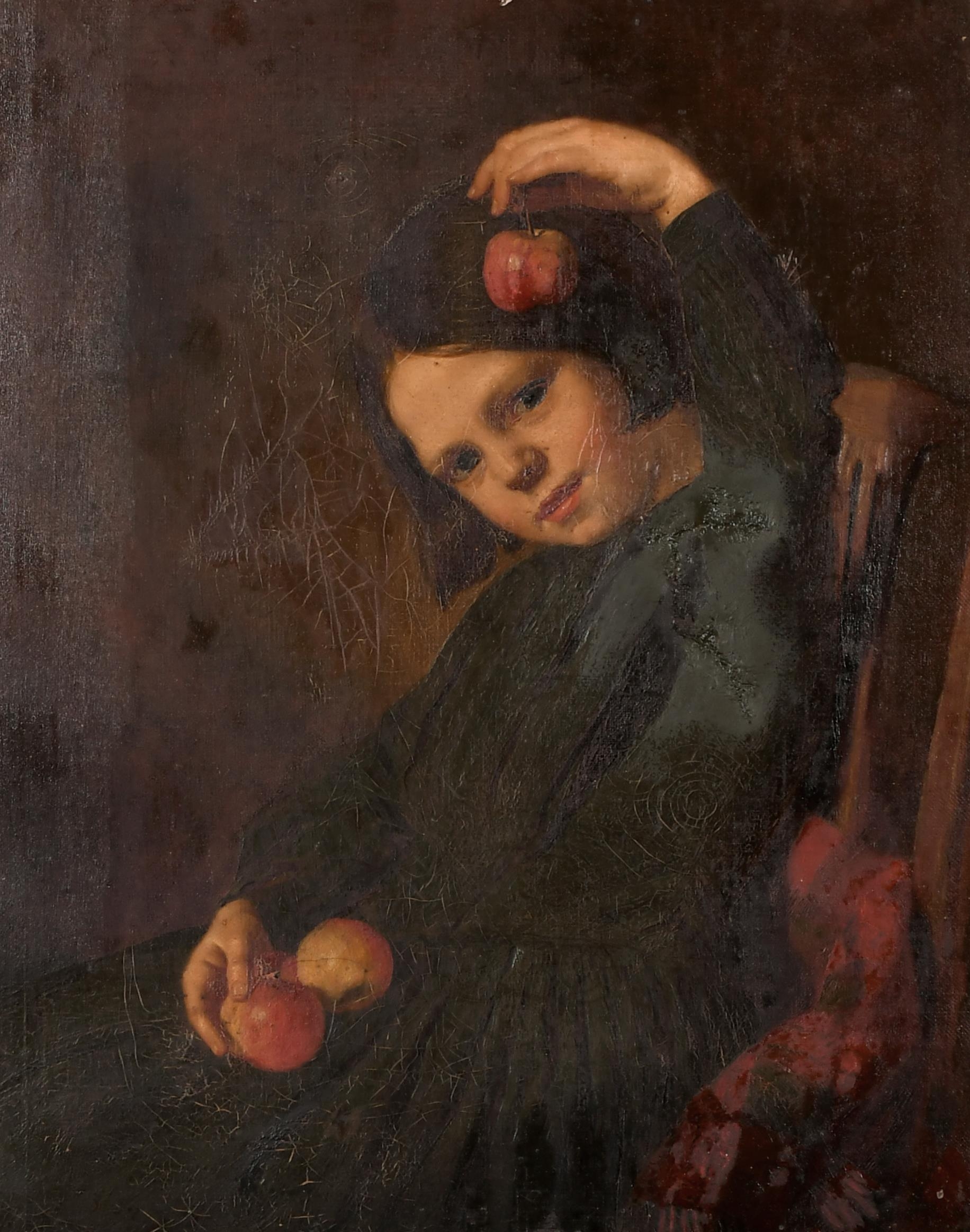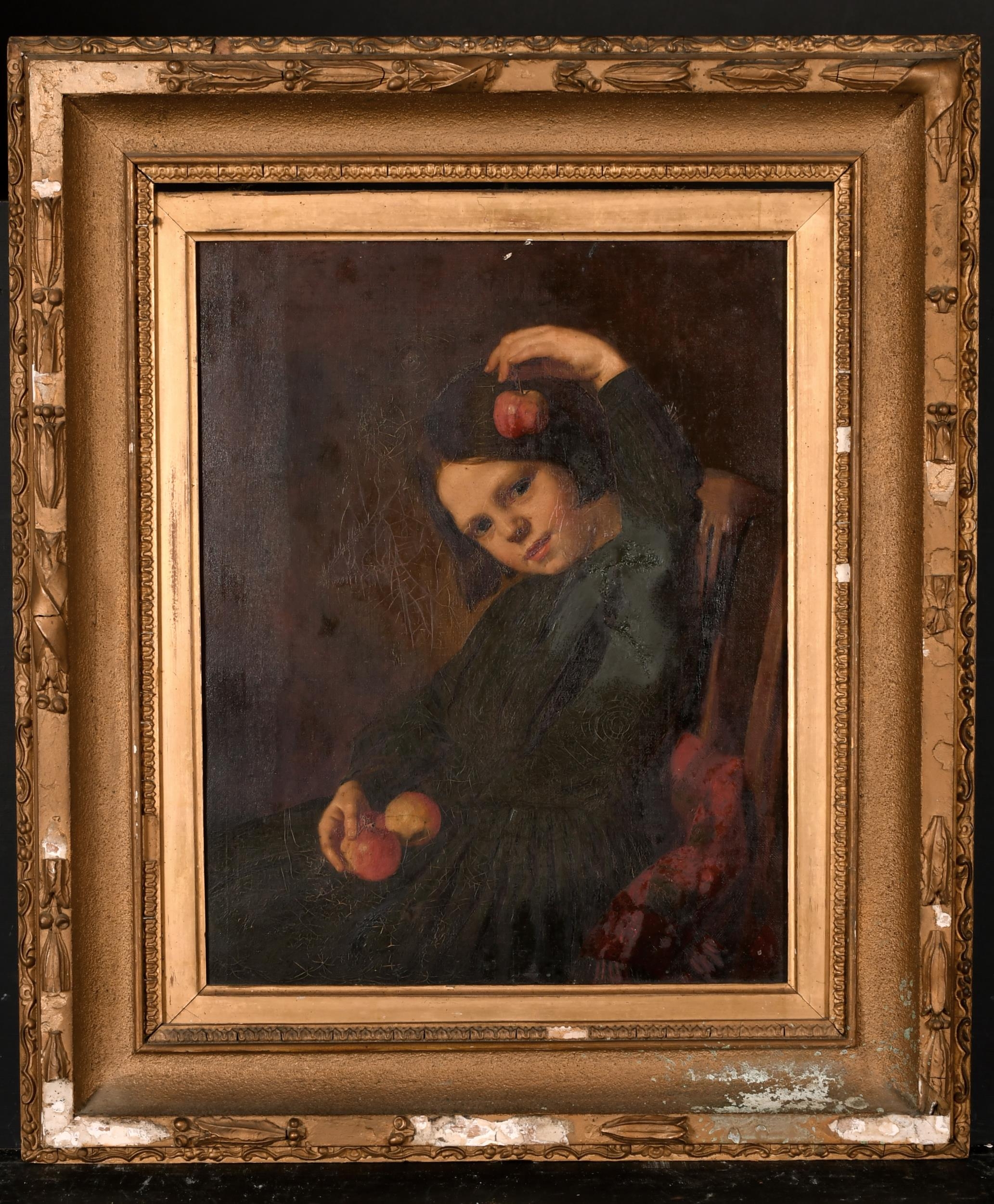 Circle of Sophie Anderson (1823-1903) French/British. A Young Girl holding Apples, Oil on Canvas, 15" x 12" (38.1 x 30.5cm)